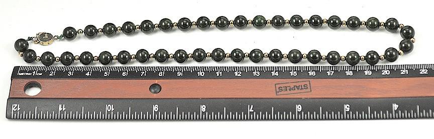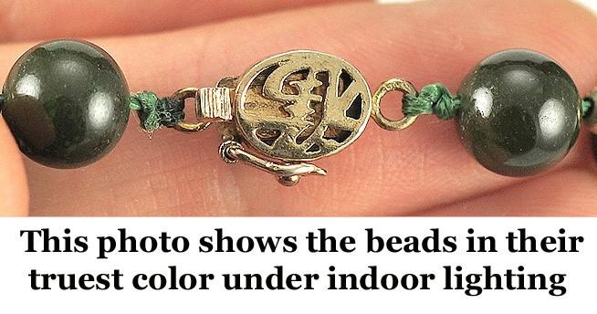 Lovely Chinese Nephrite Jade Dark Green Beaded Necklace 18 Inches Vintage 1950s