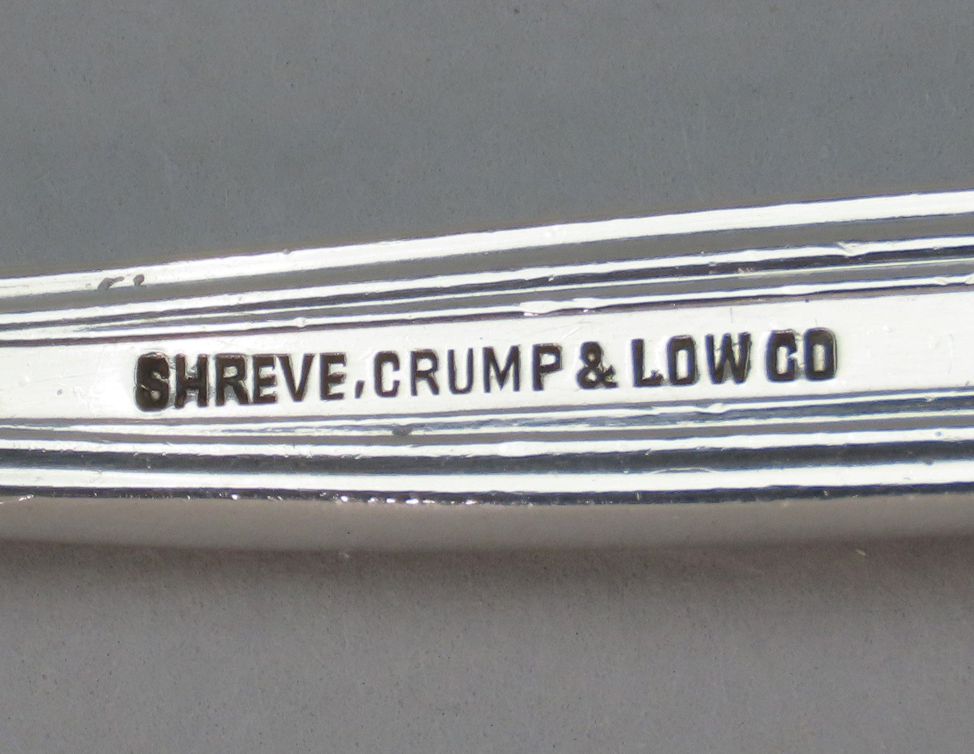 The reverse is marked sterling along with the maker's mark for Durgin and a retailer, Shreve, Crump, and Low.