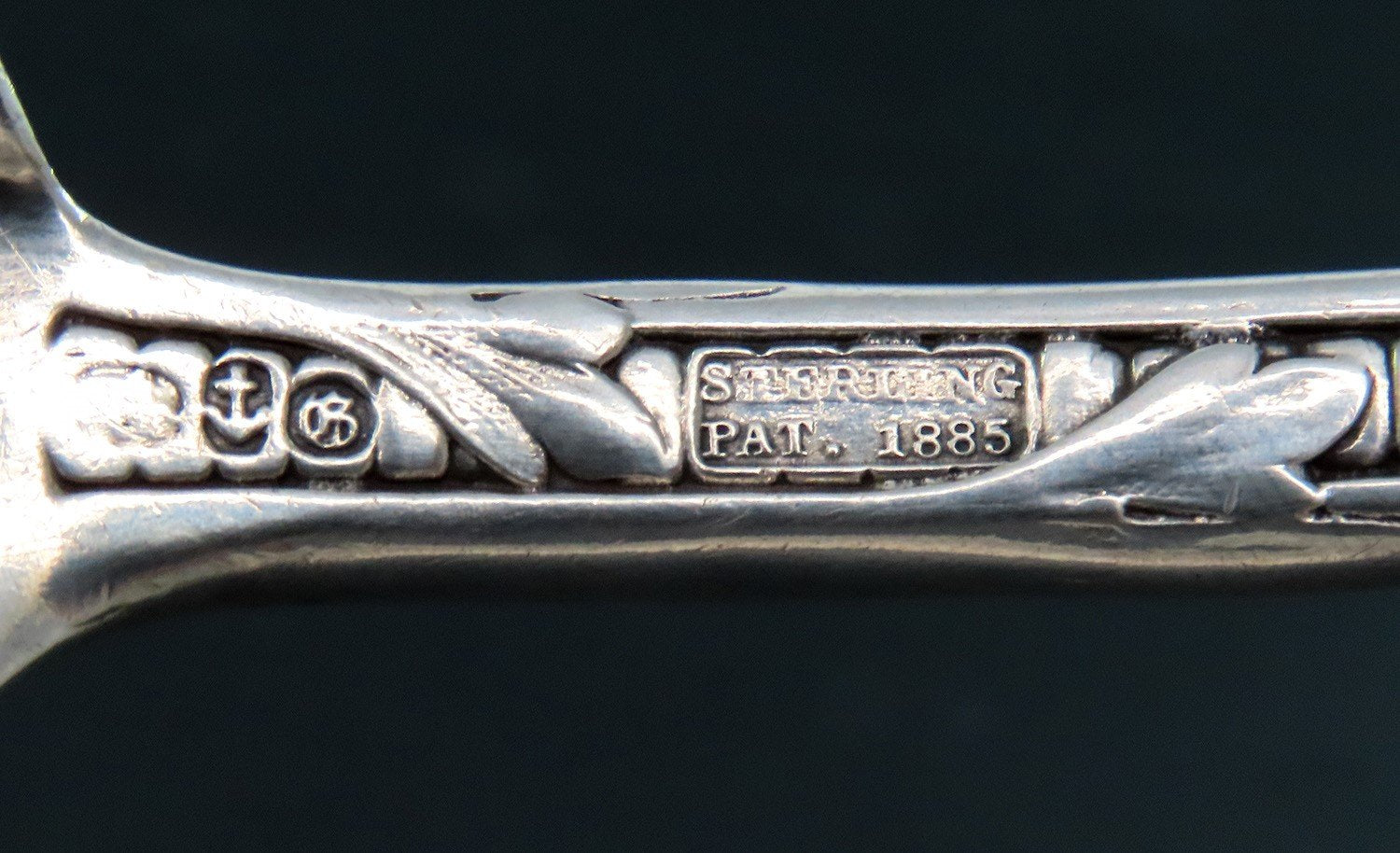 The reverse is marked sterling along with the maker's mark for Gorham and the patent date of 1885.