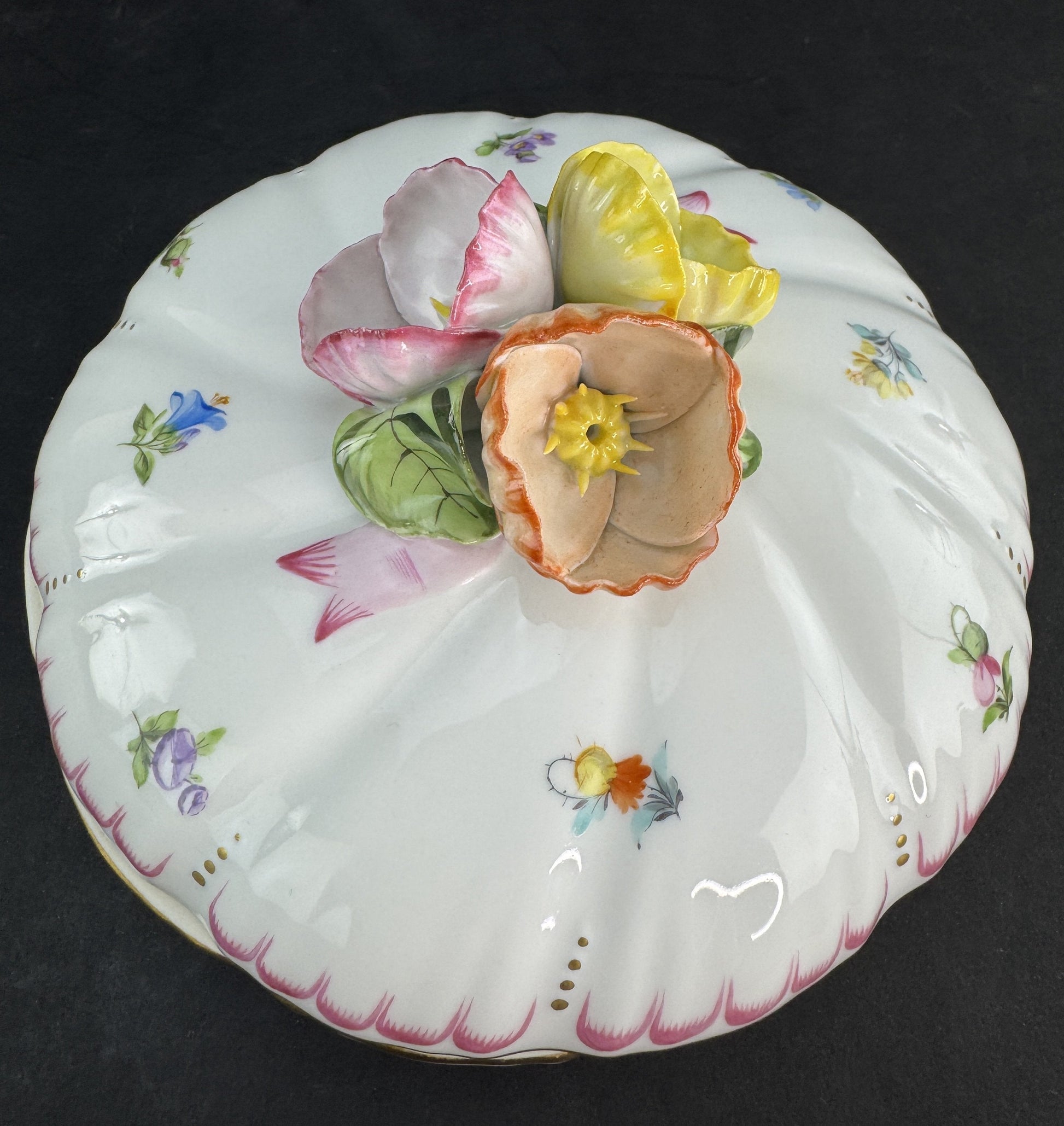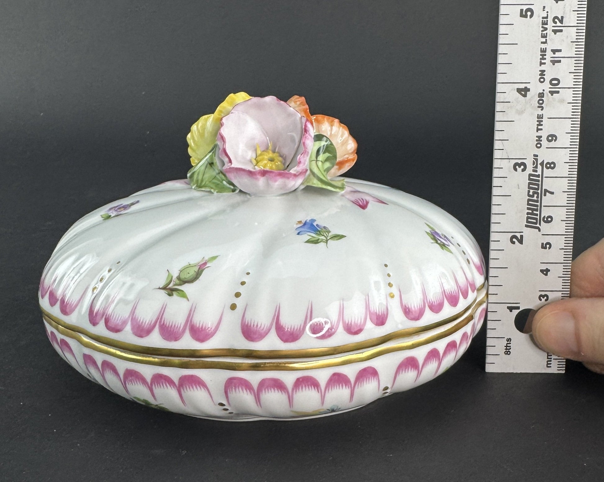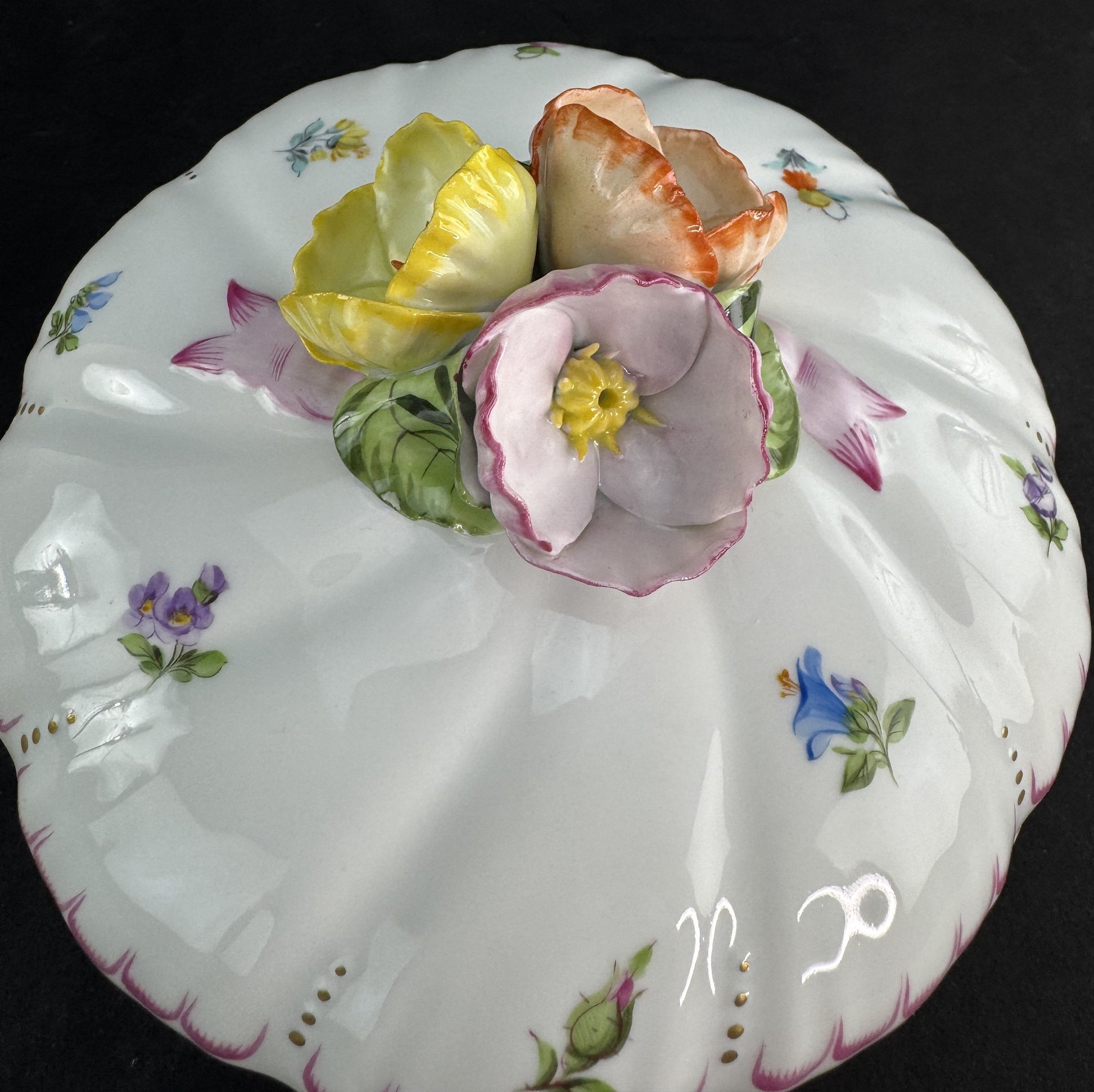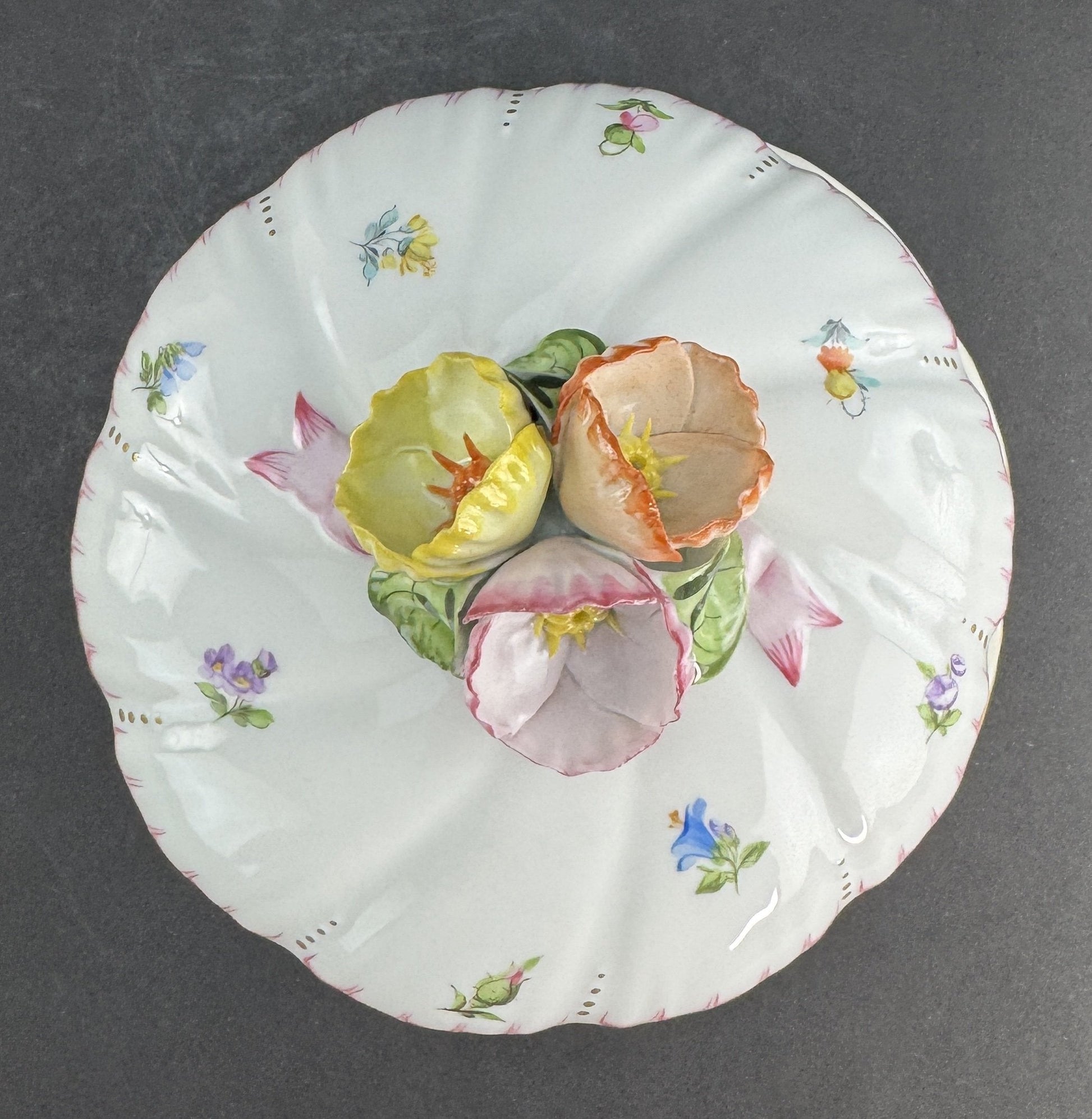 Lovely Herend Handpainted Floral Trinket Box Candy Dish w Flower Finial 6170