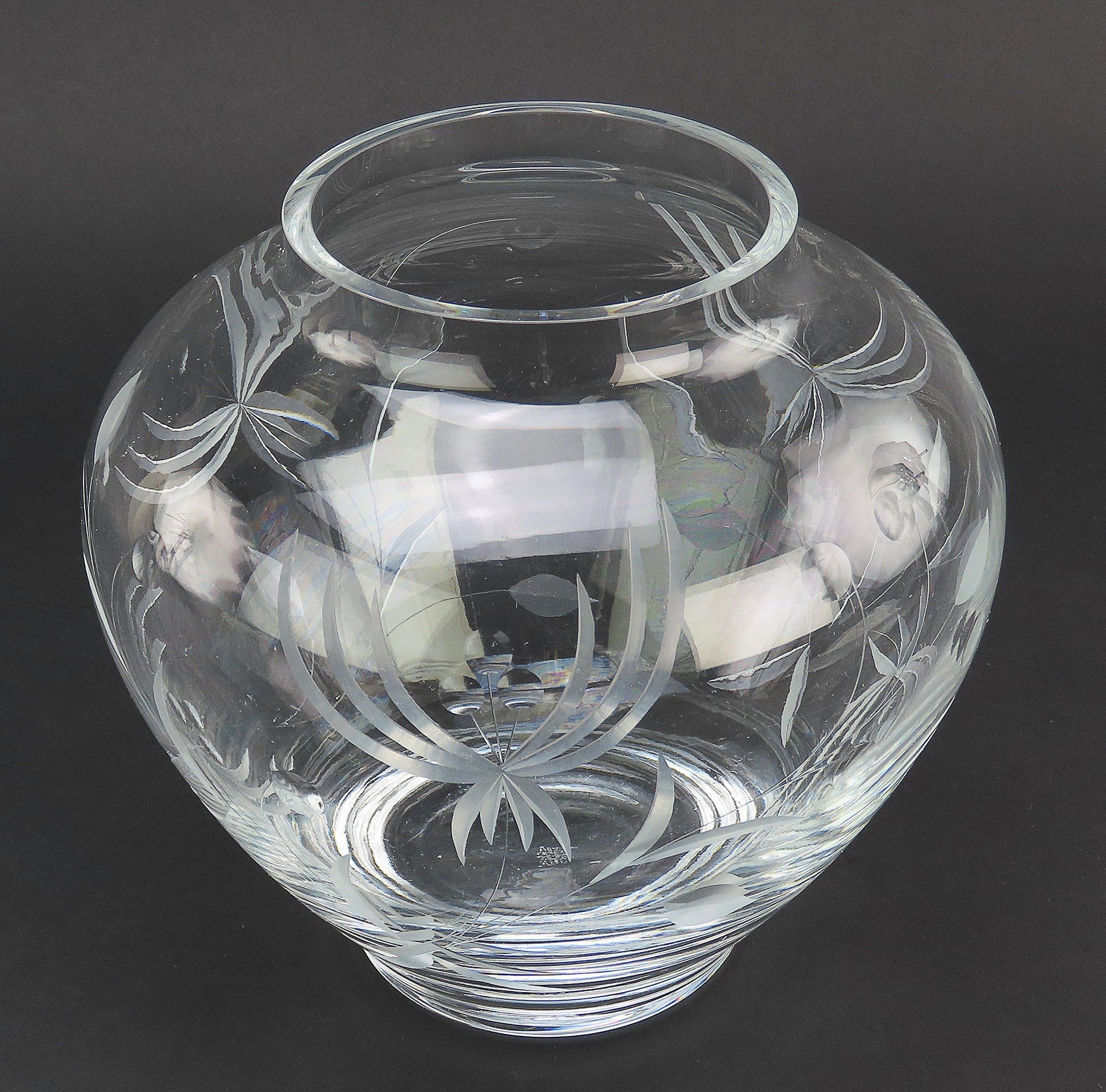 Presented is a lovely vintage Lenox glass vase. This is a very elegant vase with high rounded shoulders tapering down to a narrow round foot, in a very useable medium size. The glass is clear and beautifully cut and frosted with a stylized floral design. Excellent accent piece.