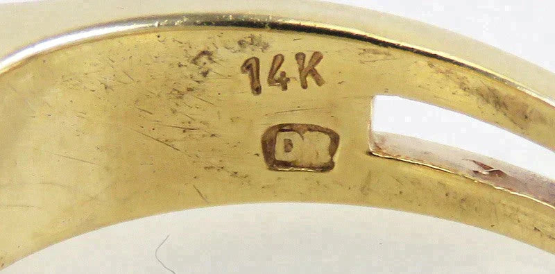 The inside of the band is marked 14K. This piece has been tested and guaranteed to be 14 karat purity.