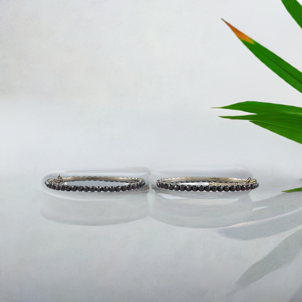 Lovely Pair 1850-1900 Bohemian Garnet Point Bangle Bracelets
