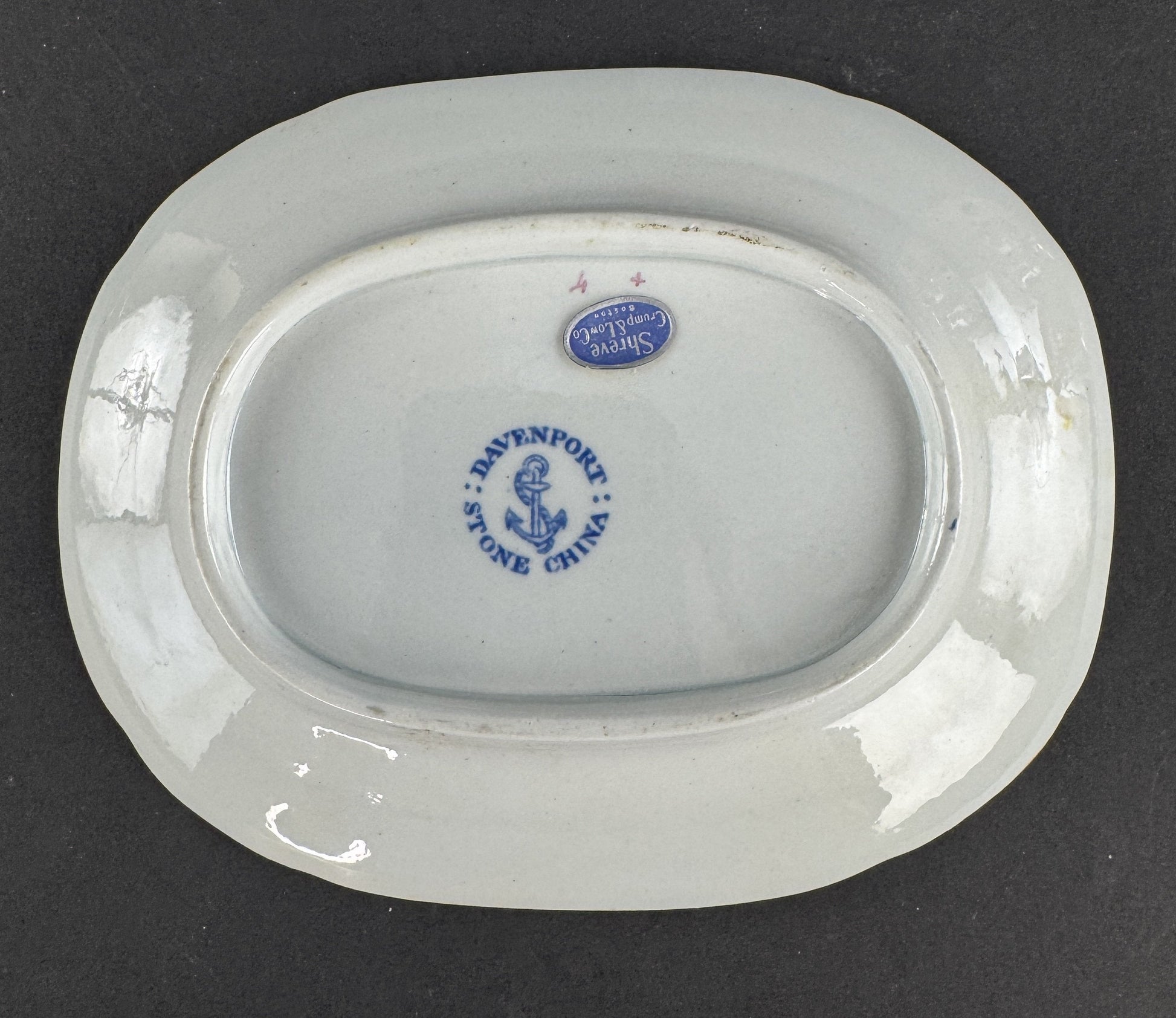 Each dish is stamped on the reverse with the oldest used Davenport mark, used circa 1805-1820. One dish even has its original Shreve Crump & Low Co retail sticker.