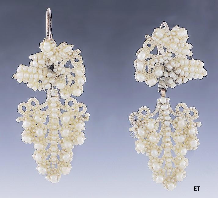 cluster of grapes. Seed pearl jewelry in this delicate, hand-sewn style was