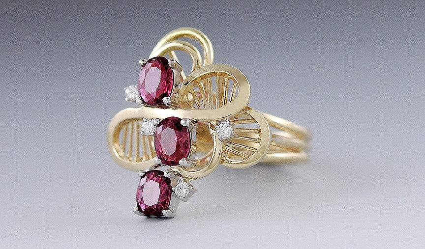 Lovely Ruby & Diamond 14K Yellow Gold Ring Size 6.75
