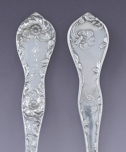 Each spoon is stamped with the Reed & Barton maker's mark as well as sterling and the patent date for the pattern, May 22 1900.