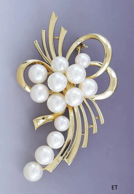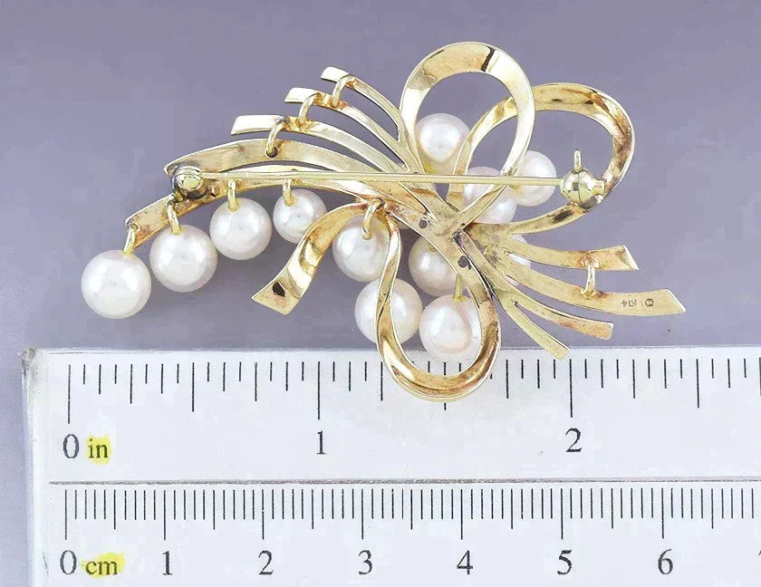 Lovely Signed Mikimoto 14k Yellow Gold Pearl Pin / Brooch