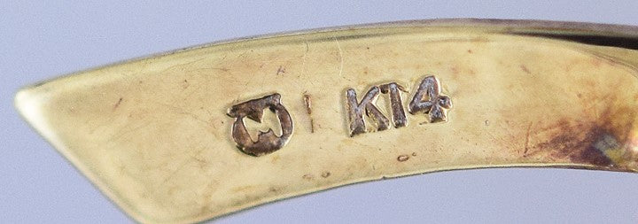 The pin is stamped k14 and with the Mikimoto maker's mark on the back of the 'stem' portion.