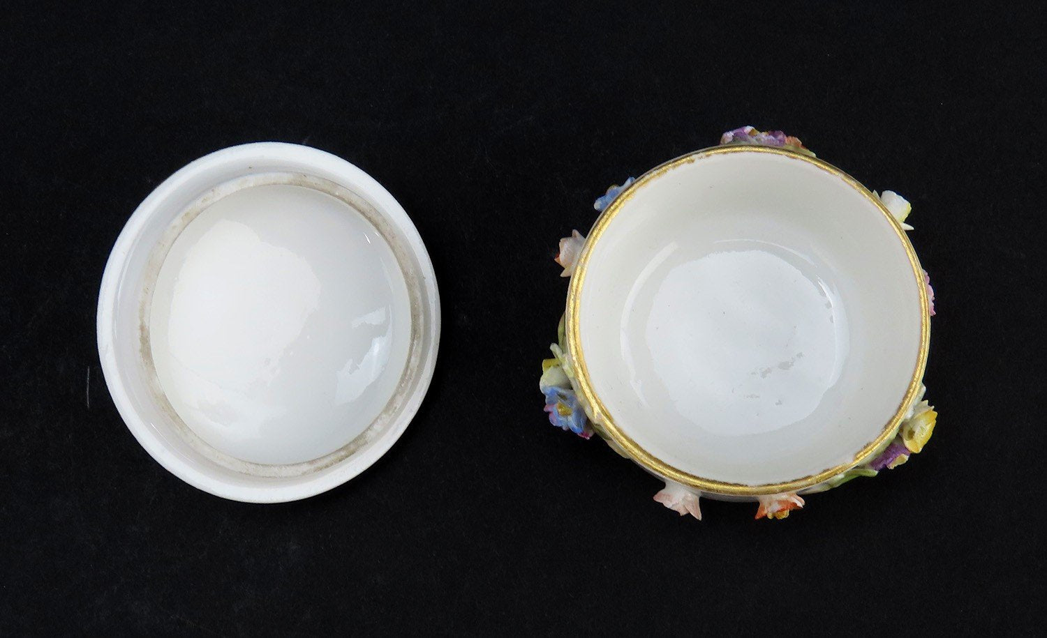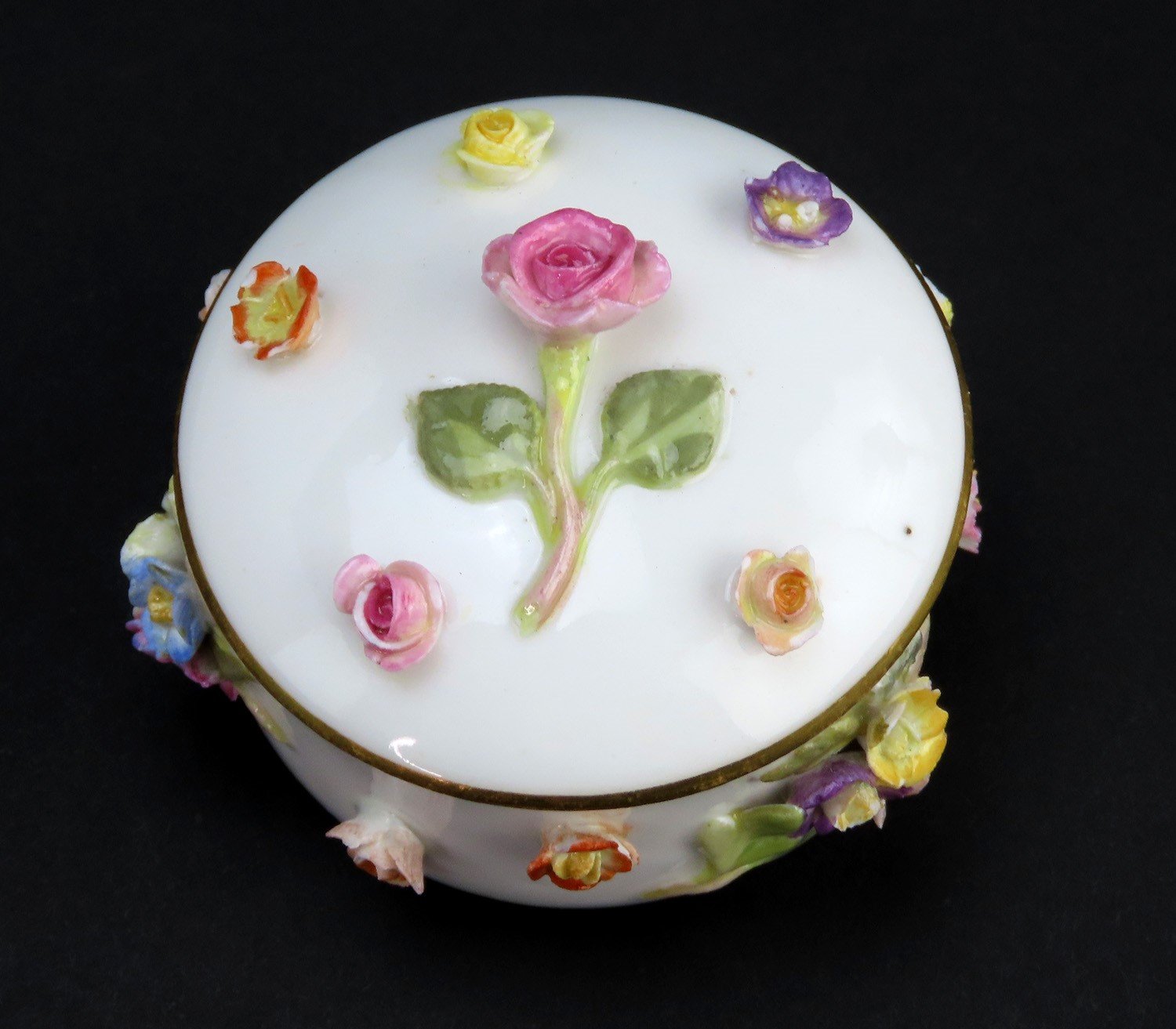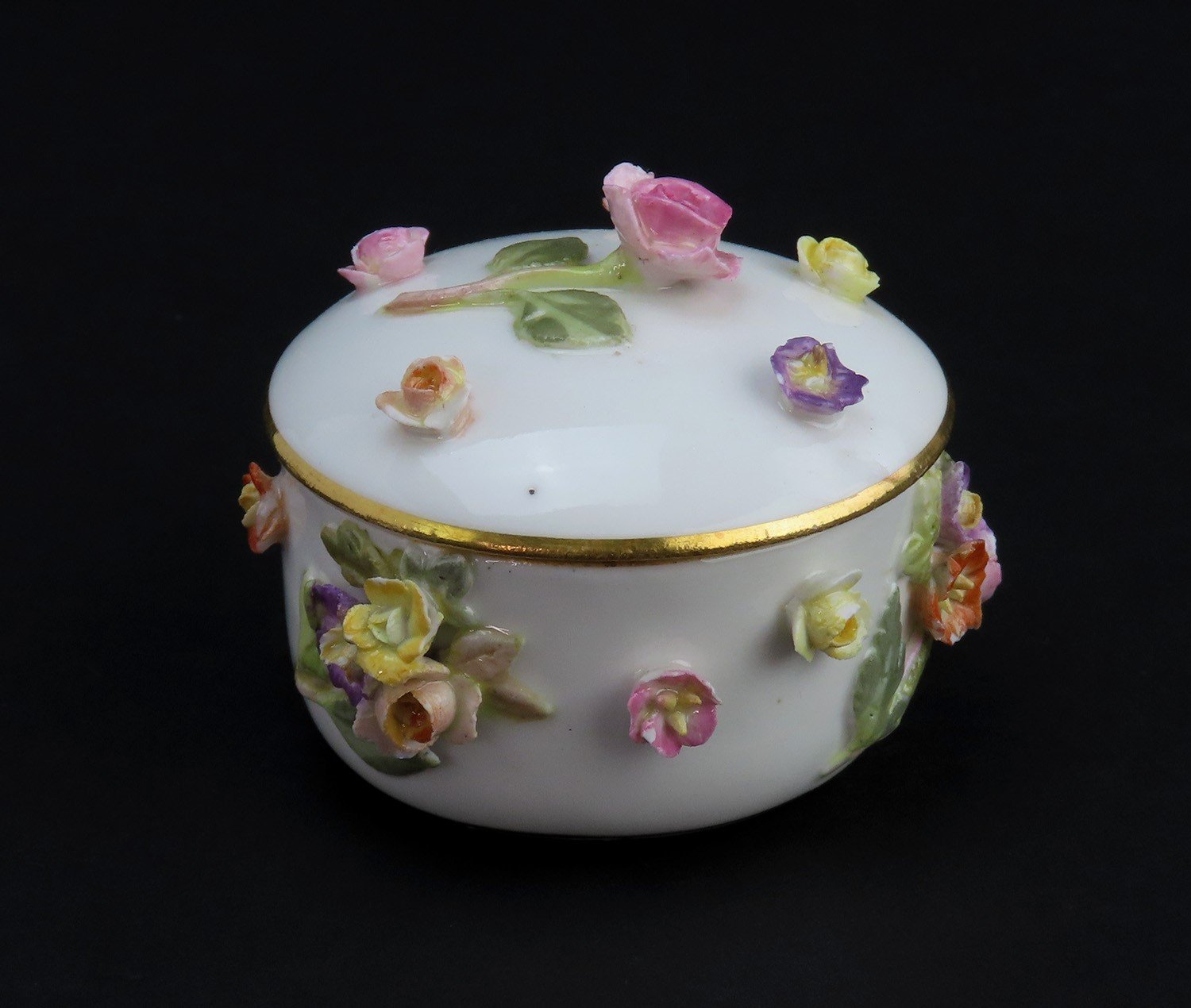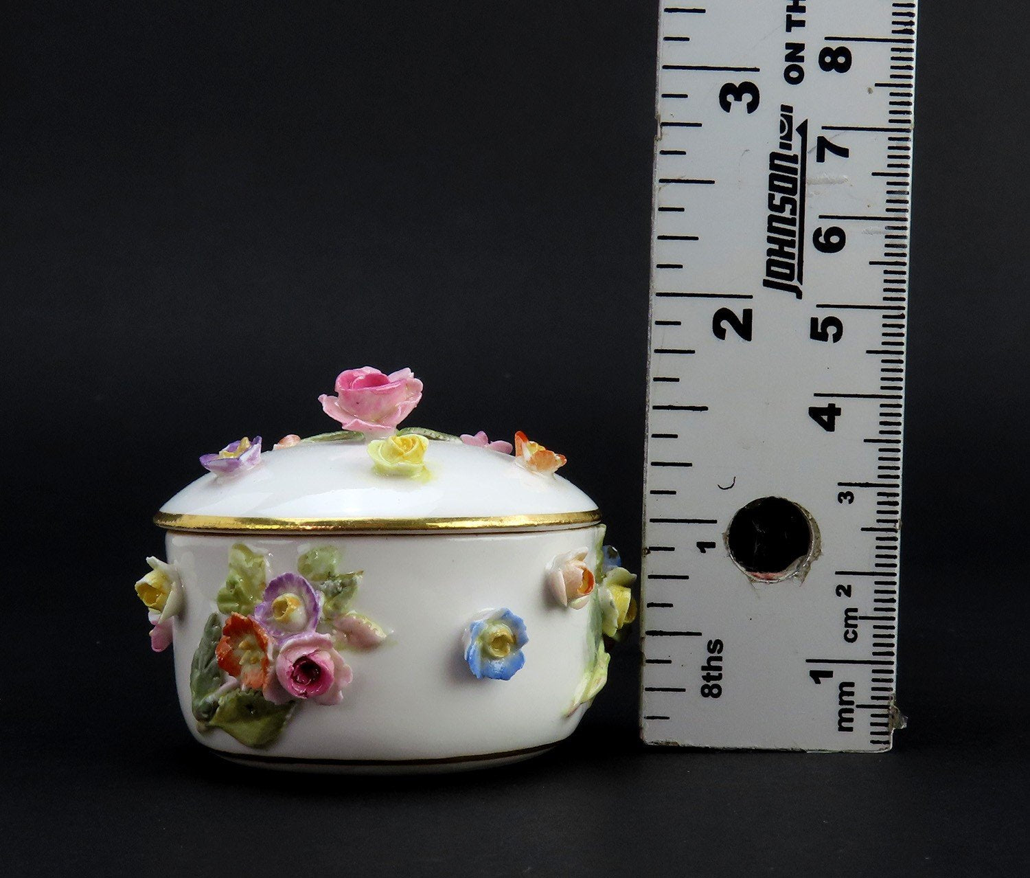 Lovely Small Meissen Porcelain Box w/ Colorful Applied Flowers Late 1800s