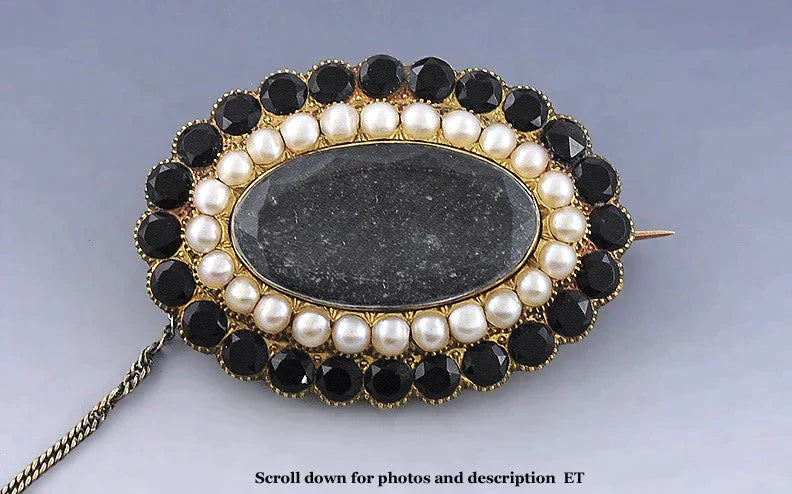Lovely Victorian 18k Gold Pearl Onyx Hair Mourning Pin/Brooch