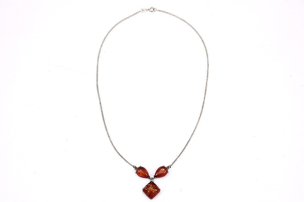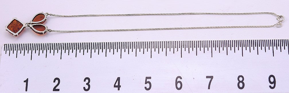 Lovely Vintage Sterling Silver and Genuine Amber Lavalier Style Necklace 17.75"