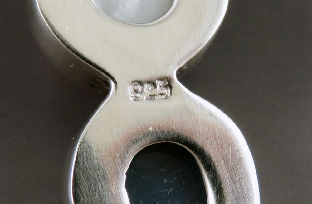 The pendant is stamped 925 for sterling silver, tested and guaranteed.