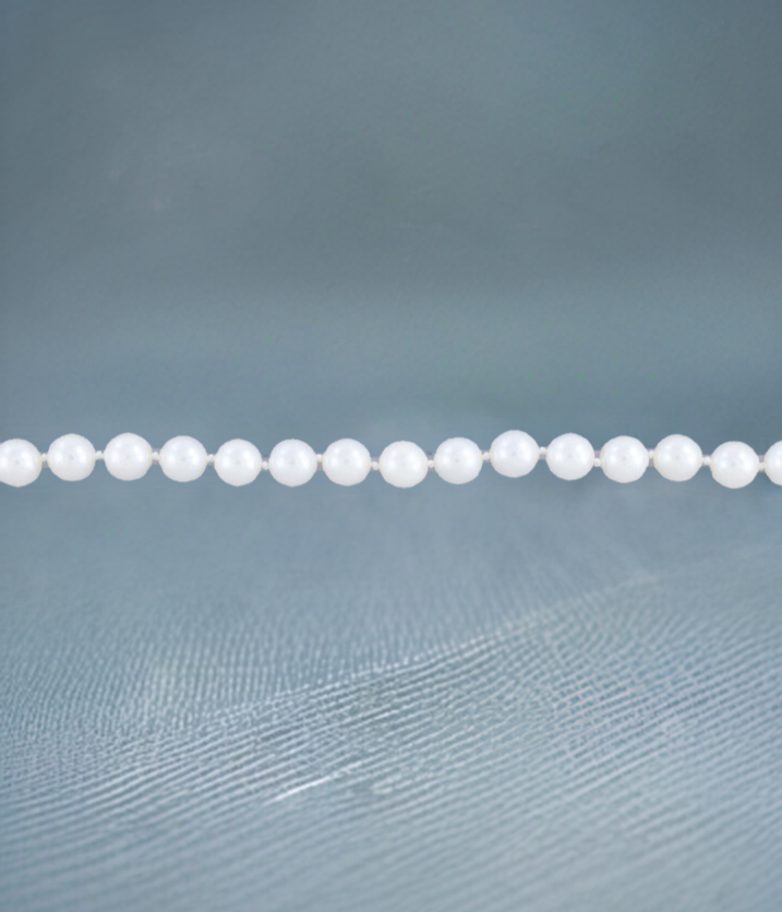 Presented is a lovely single strand pearl necklace. This necklace probably dates to around the 1950s, but with such a classic design it's hard to say for sure. These pearls are about 6.5 to 6.8 millimeters in diameter. The pearls are Akoya saltwater pearls, cream with rose and silver overtones. The pearls are individually hand-knotted, for additional security. There is no clasp to this necklace, it is a continuous strand, meant to be slipped on over the head.
