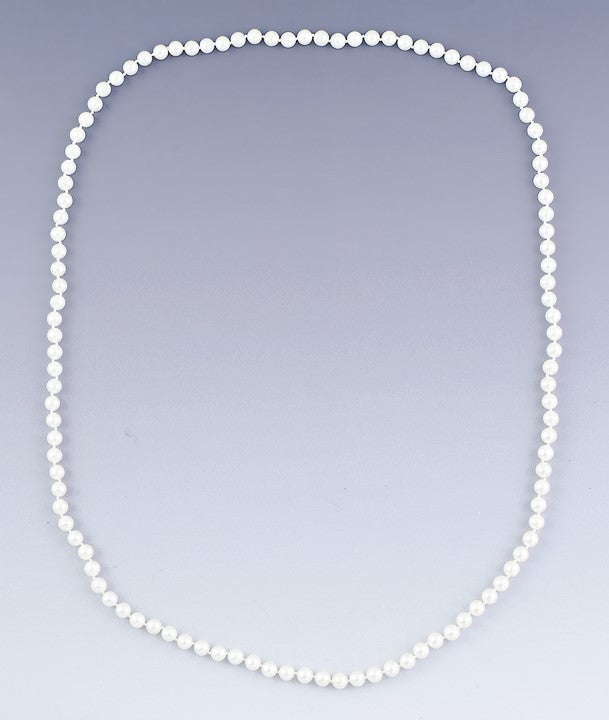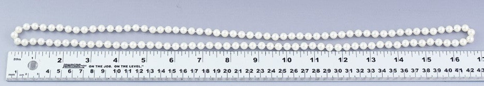 Lovely VTG Single Strand Hand Knotted ~6.5mm Pearl Necklace 34"