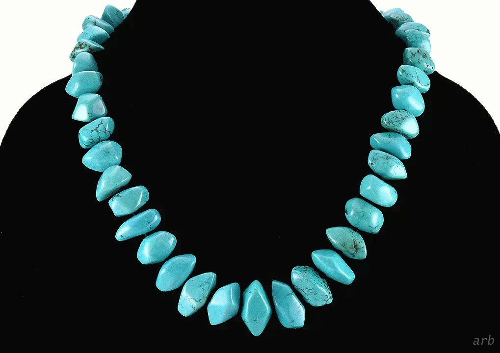 Each of the lovely blue stones is nicely polished. This necklace is very uniform-looking and is really quite well done.