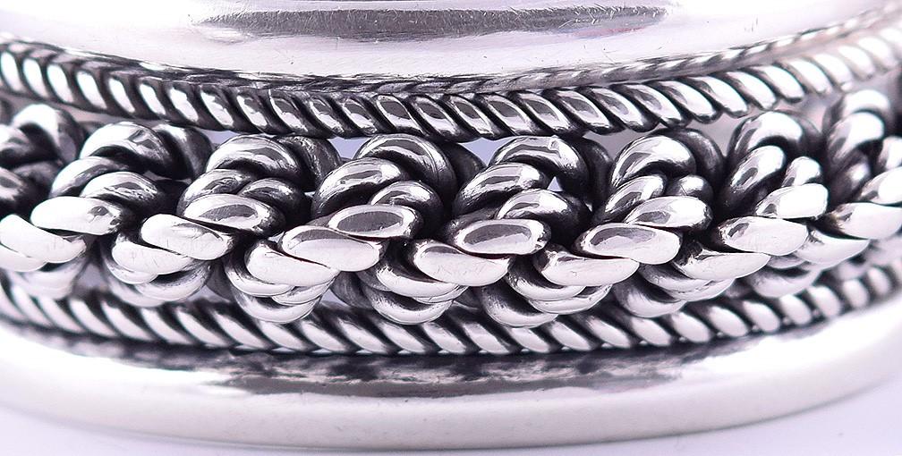 Marvelous Thick Width Turkish Silver Cuff Bracelet w/ Ropes and Woven Design