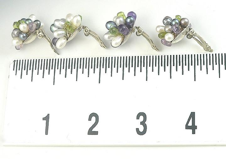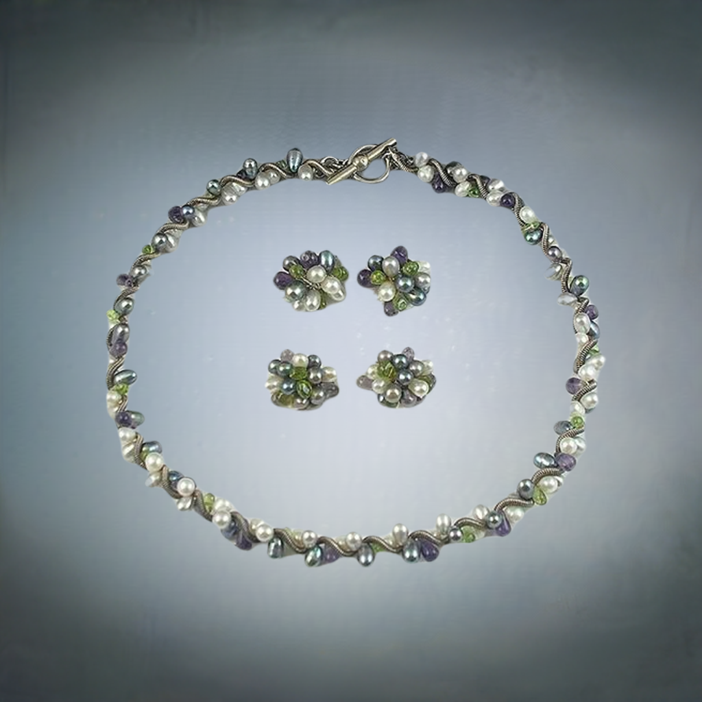 Matching 3 Pc Lot: Necklace and 2 Pairs of Earrings Pearl Peridot Amethyst