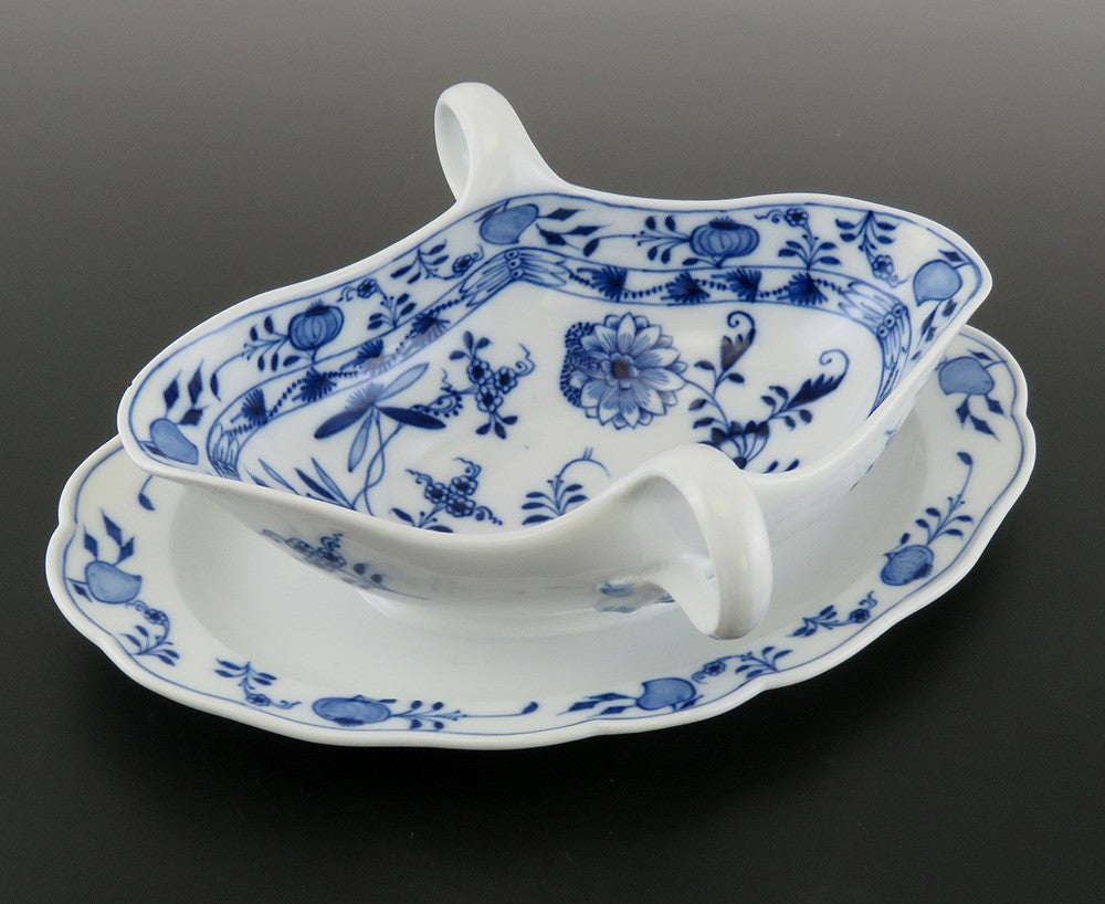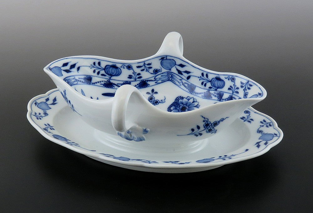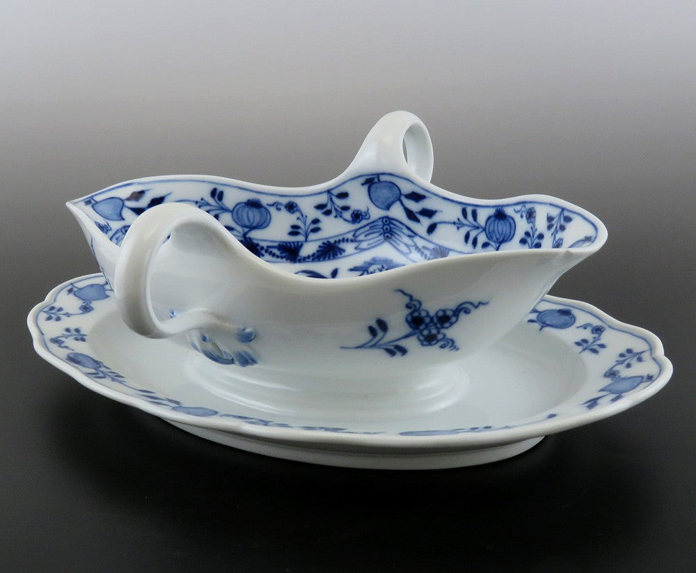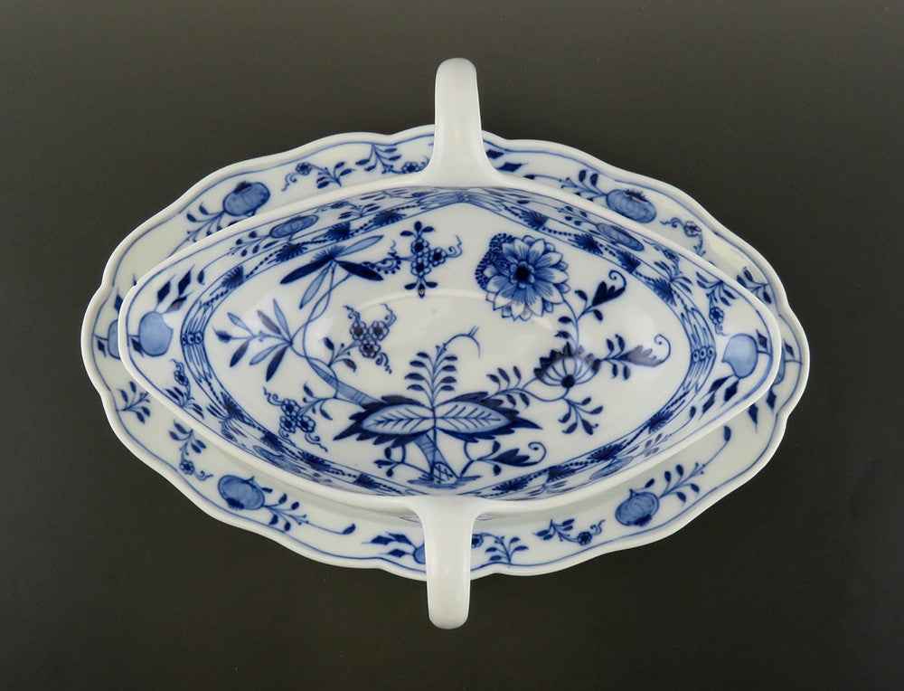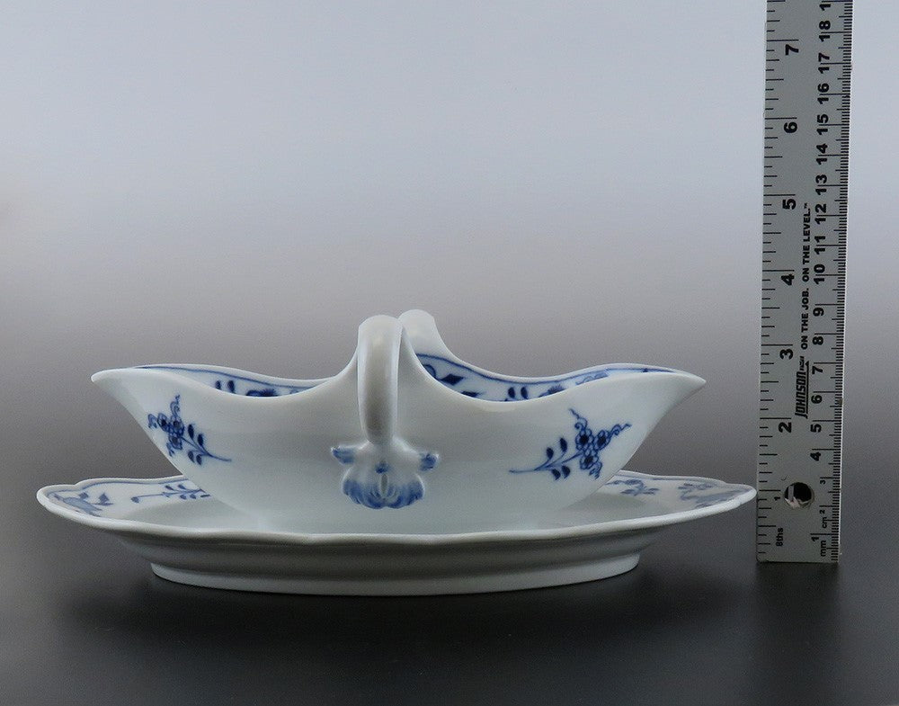Meissen Crossed Swords Blue Onion Double Spout Gravy Sauce Boat Tureen w/ Plate