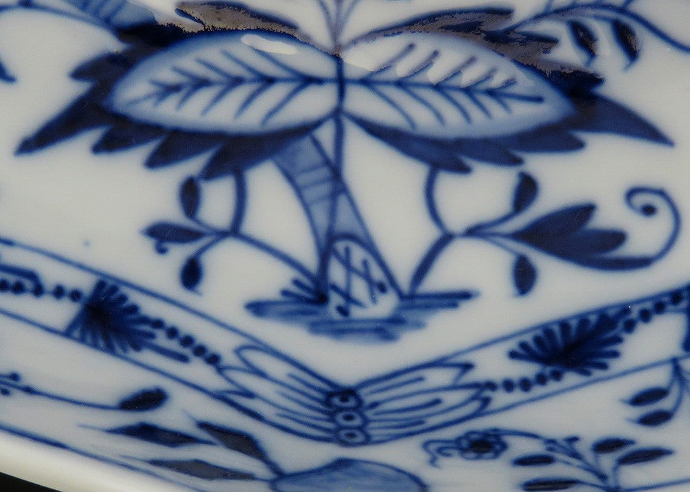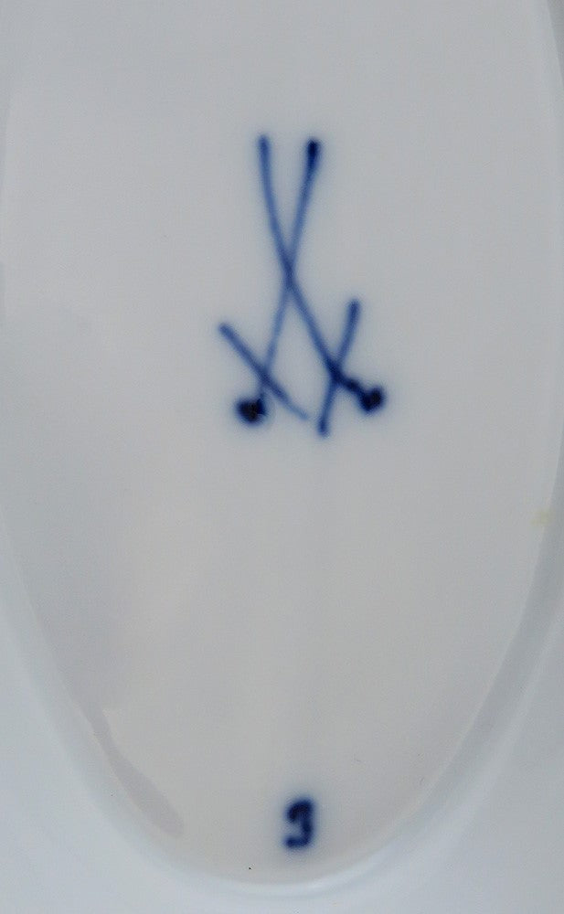 The underside bears the Meissen crossed sword hallmark and has no cancellation marks. The crossed swords can also be seen at the base of the onion plant.