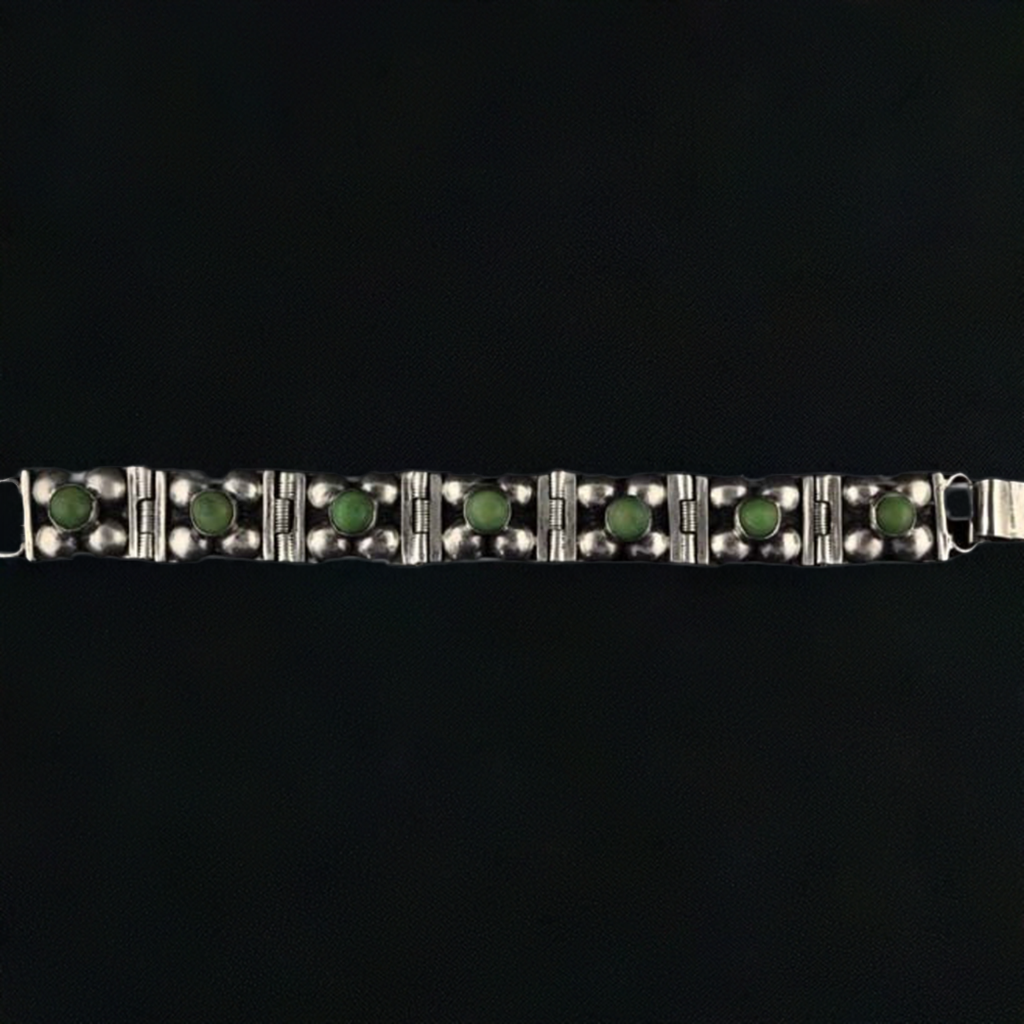 Mexican Silver Genuine Green Turquoise Link Bracelet