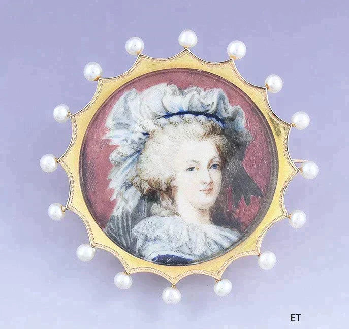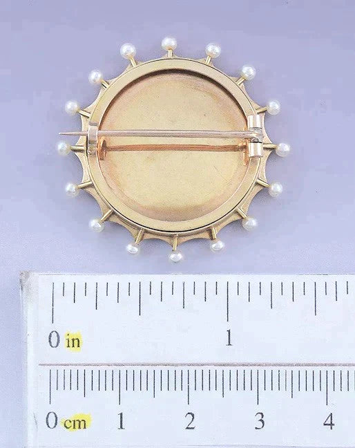 Mid 1800s Victorian Superb 18k Gold Seed Pearl Miniature Portrait Pin / Brooch