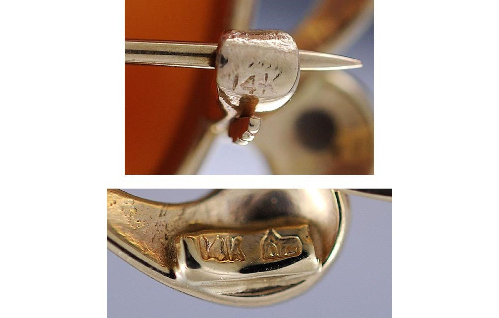 The cameo measures 1 1/4 by 1 1/2 inches and weighs 7.4 grams.