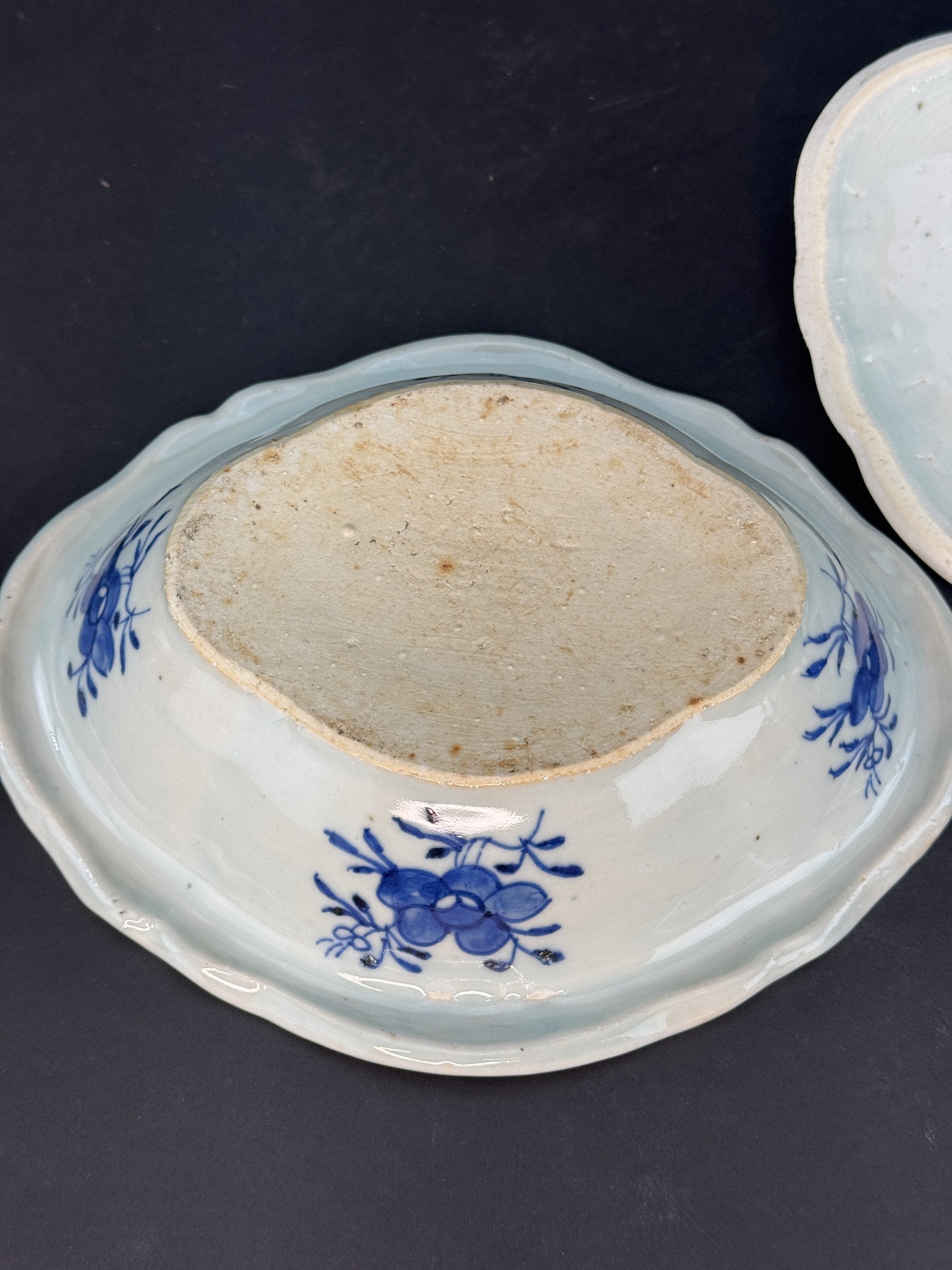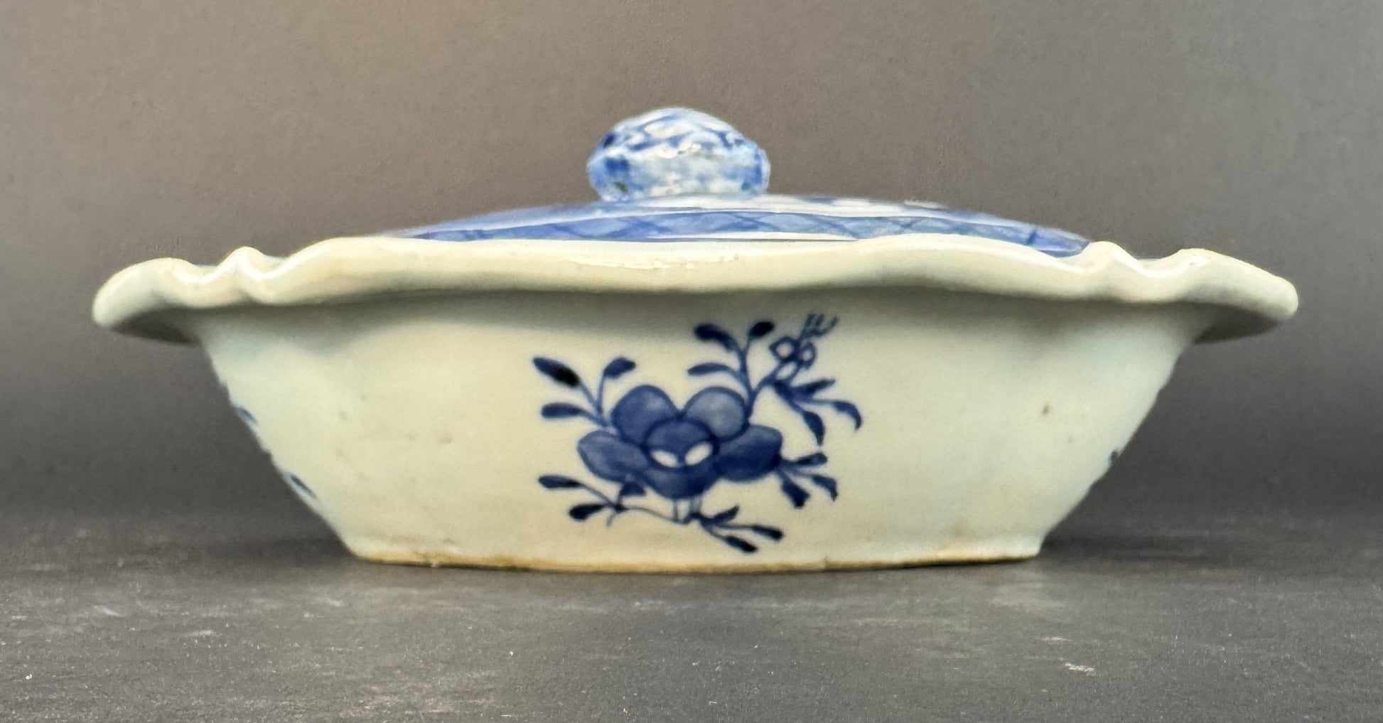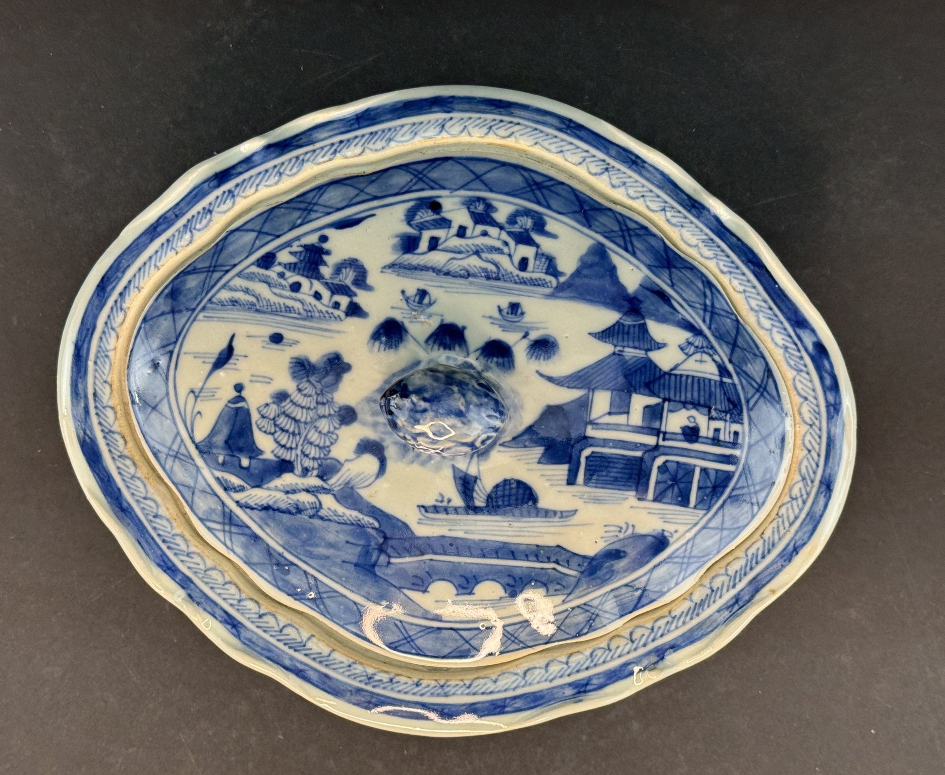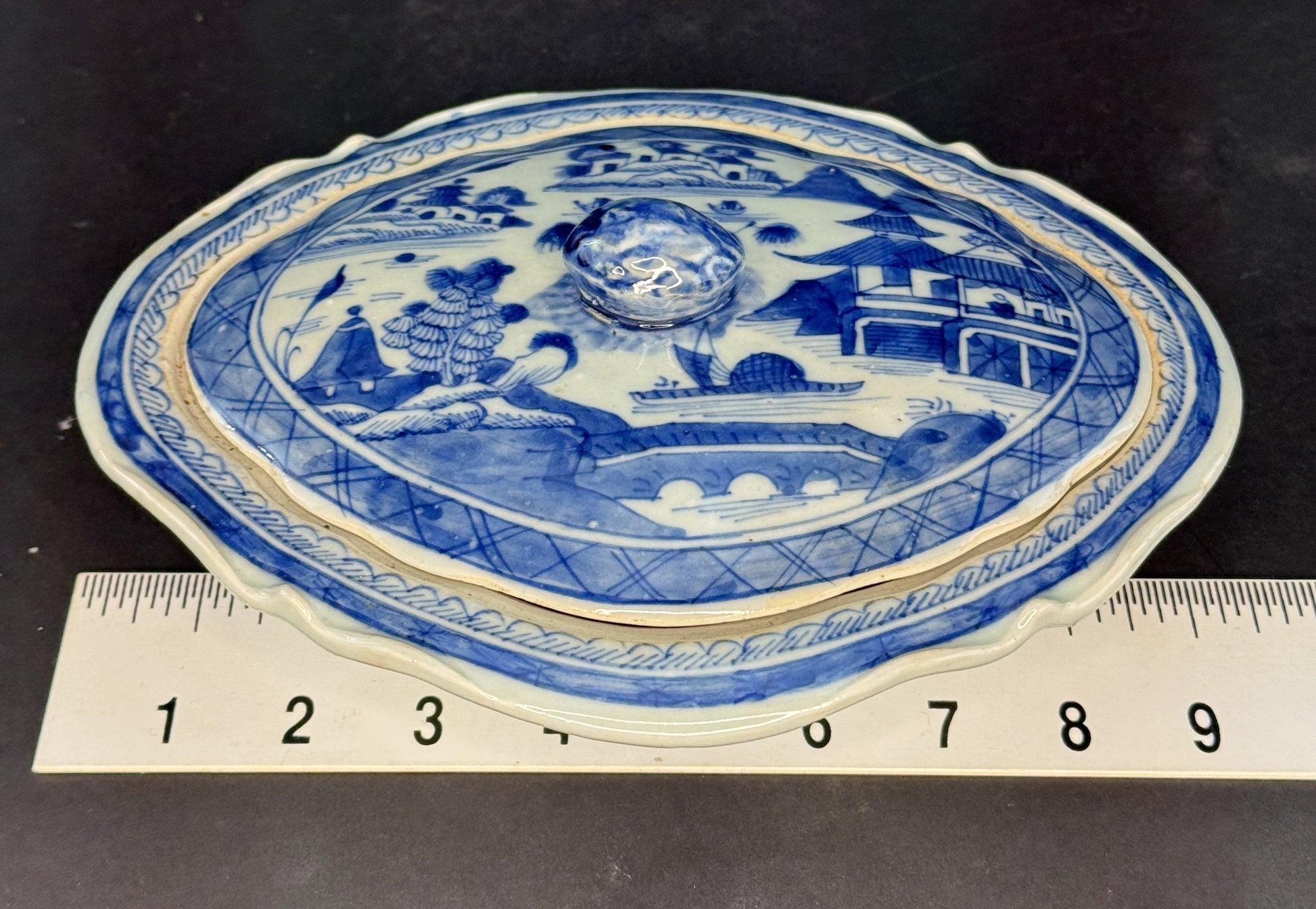 Mid/Late 1800s Chinese Export Blue White Canton Blue Willow Covered Serving Dish