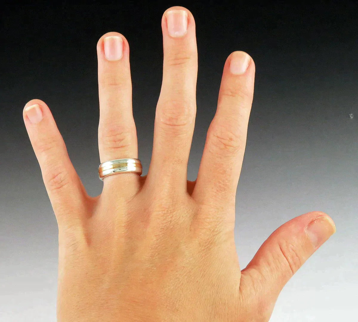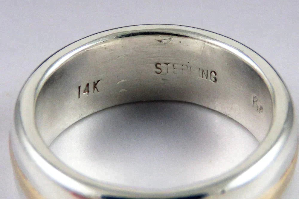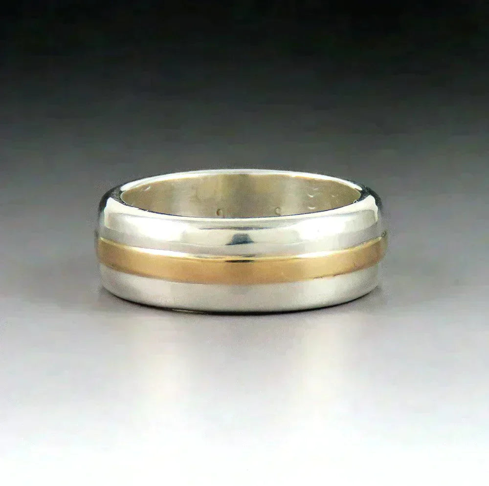 Modern 14K Yellow Gold Sterling Silver Band Ring