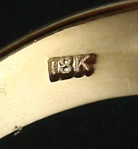 The ring is marked 18K on the band. We have tested the ring with nitric acid and guarantee it to be 18K gold.