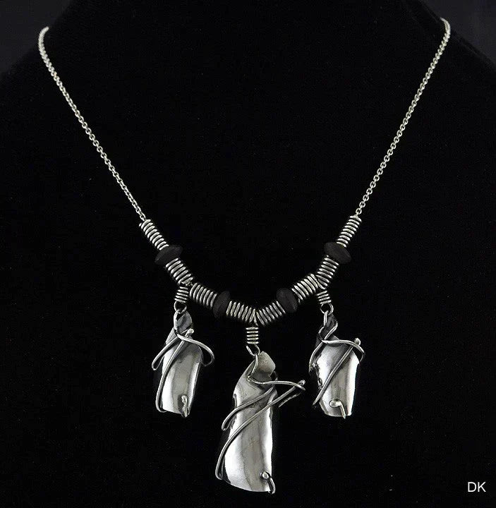 Presented is a neat handmade necklace featuring hand made silver beads.