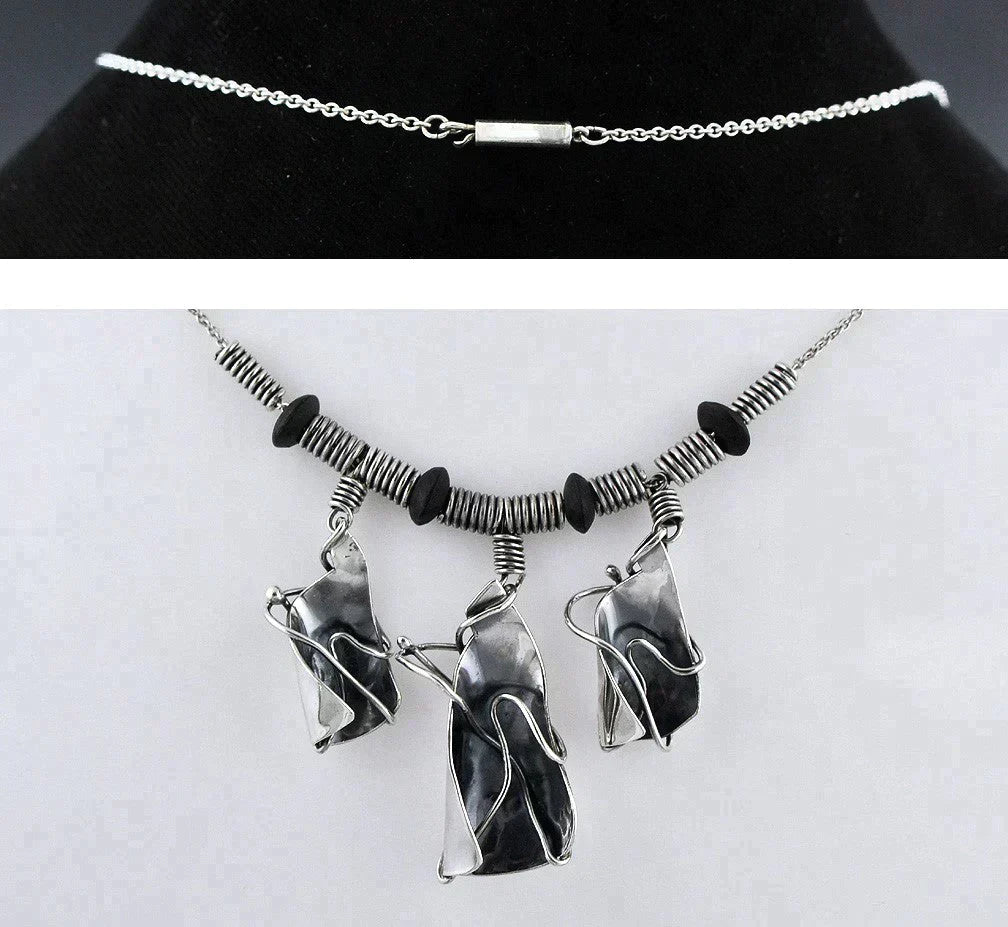 Modern Handmade Sterling Silver Necklace Oxidized Finish