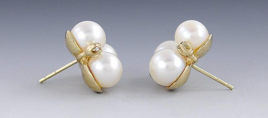 American manufacture. Each earring is set with three very nice pearls 7-7.3 mm