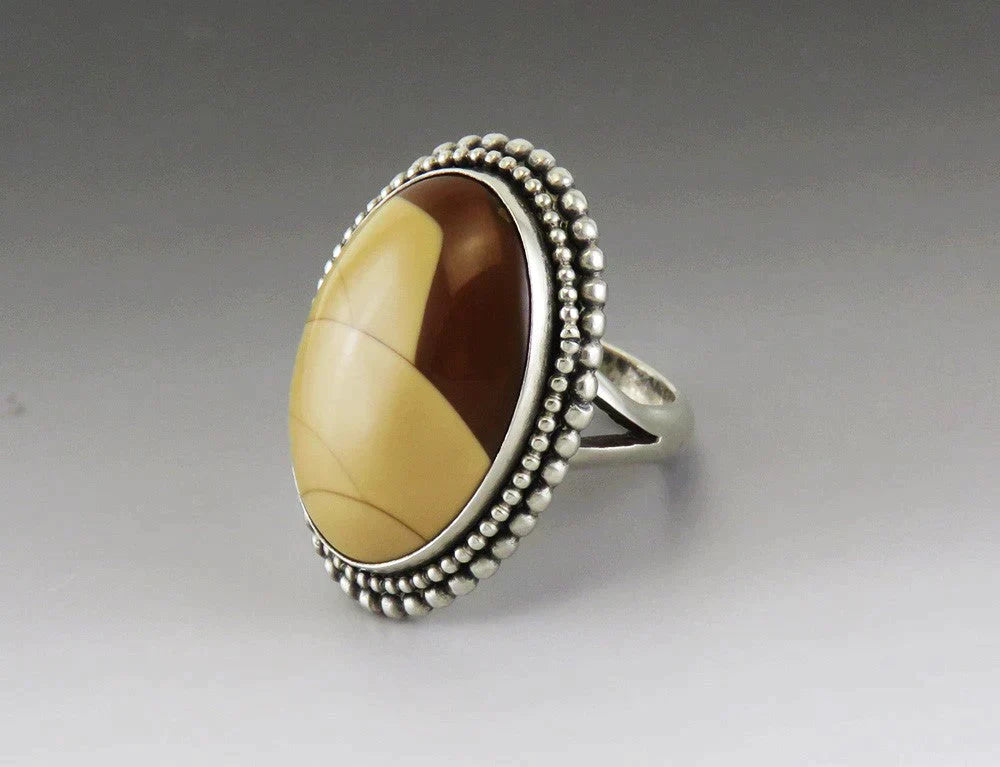 Native American Indian Sterling Silver & Natural Stone Statement Ring