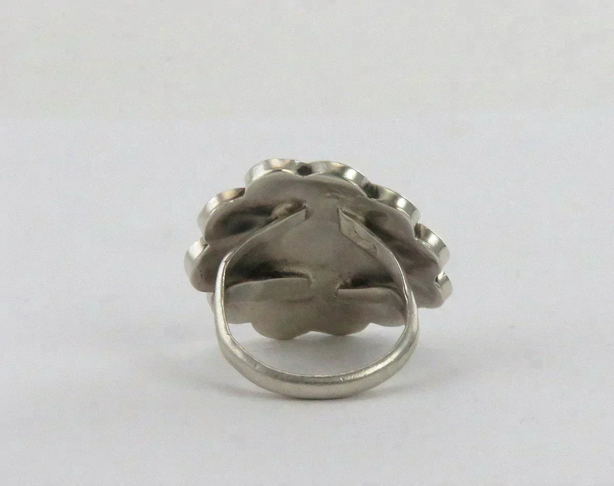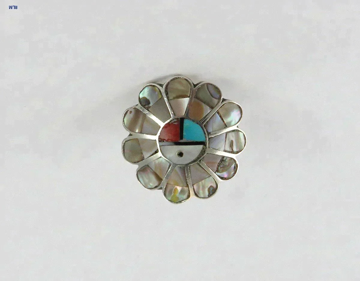 Native American Indian Sterling Silver Turquoise Coral MOP Zuni Sun Face Ring