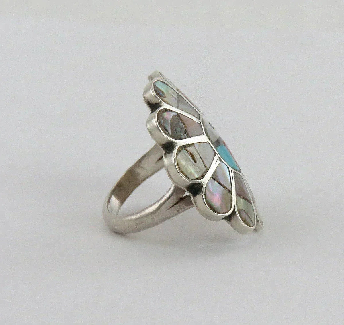 inlay ring. This is a lovely vintage piece, likely of Zuni make. The head of the