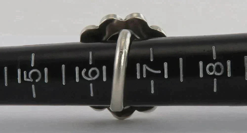 The ring is a size 7. The head of the ring is about 28.5 millimeters in