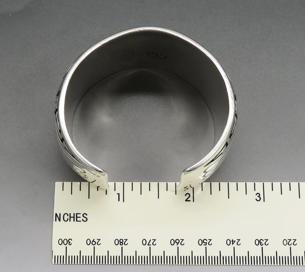 The inside of the cuff is marked Navajo, HSB for Howard Begay and sterling. Tested and guaranteed to be 925 sterling silver purity.