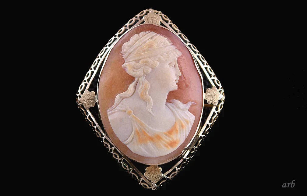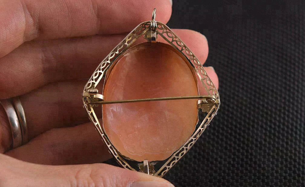 Neat Antique Greco-Roman 10k Yellow Gold Hand Carved Cameo Pin/Pendant
