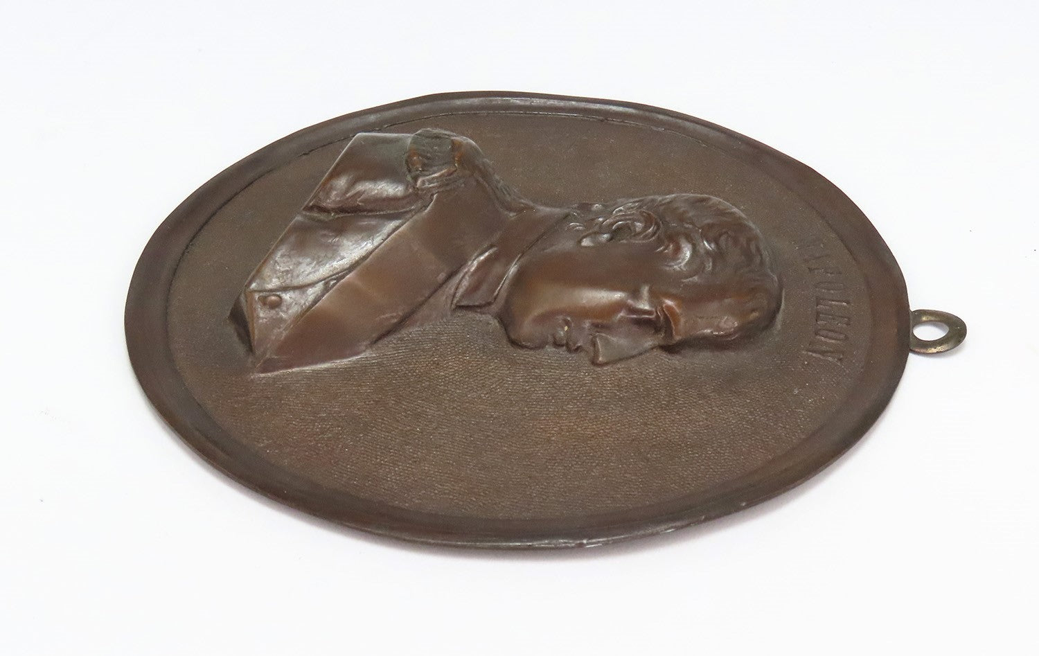 Presented is an antique copper wall hanging plaque depicting Napoleon Bonapart, dating to the late 1800s. The plaque is well made and nicely detailed, showing Napoleon in profile in high relief against a textured background.