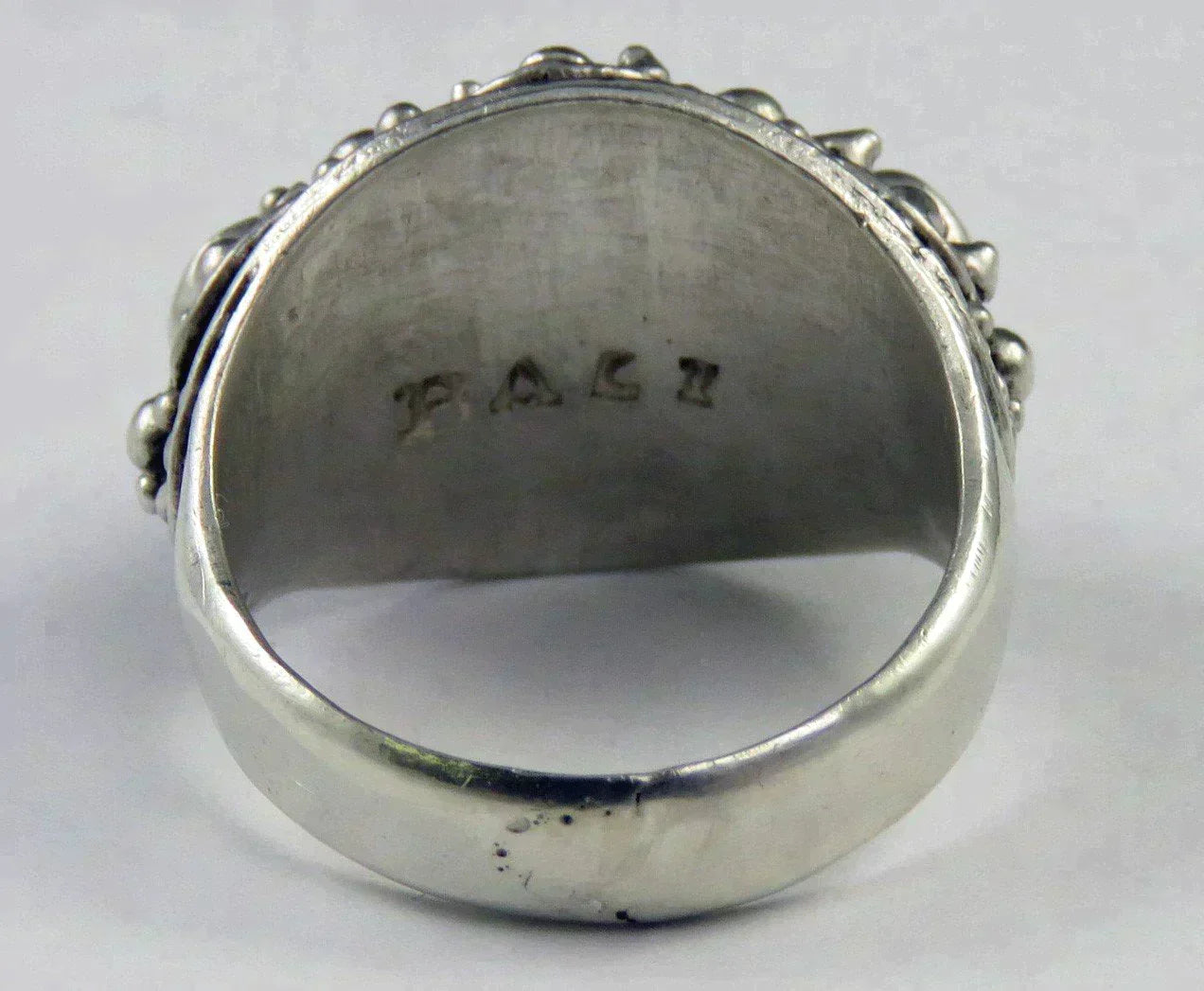 The inside of the ring is marked Bali. This piece is guaranteed to be at least 800 purity silver.