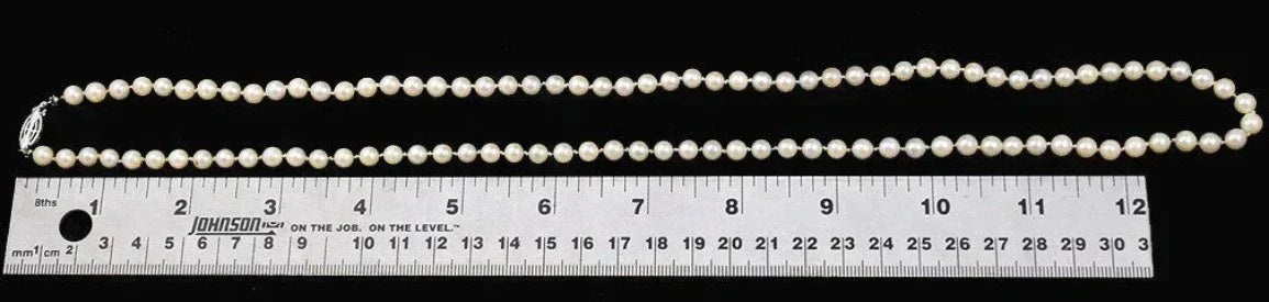 Necklace of Individually Knotted White Pearls w/ 14k White Gold Filigree Clasp