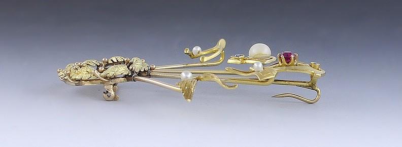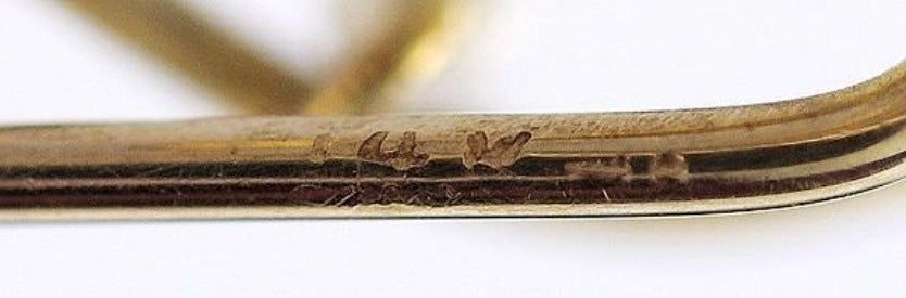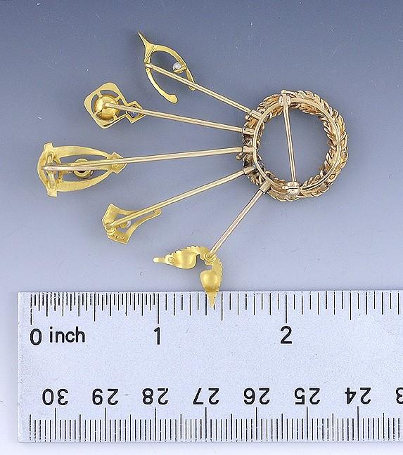 The wreath pin is nitric acid tested and guaranteed 14 karat gold.