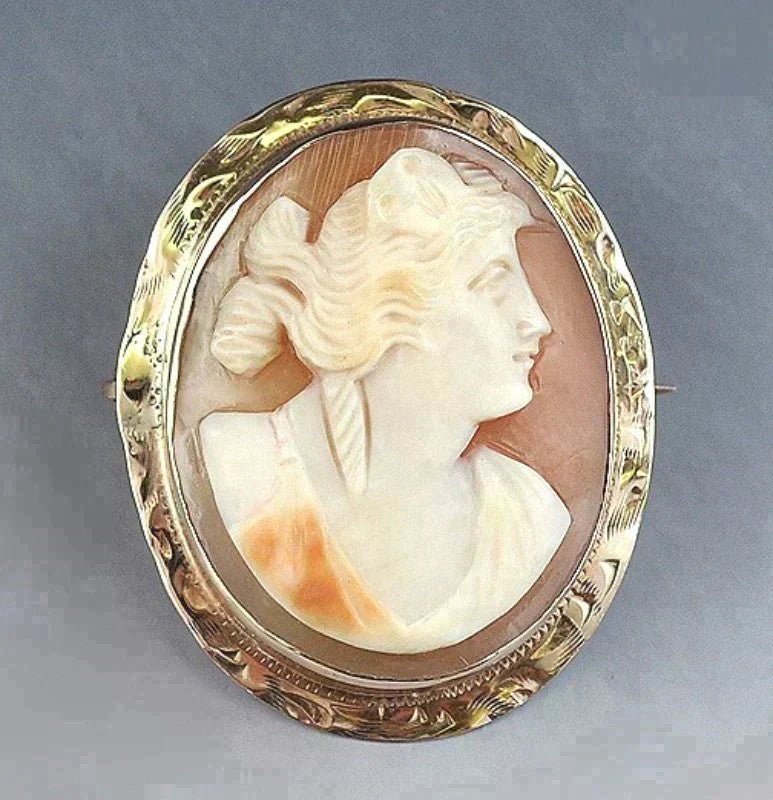 Nice Antique 10k Yellow Gold Pendant or Pin w/ Creamy White Female Cameo