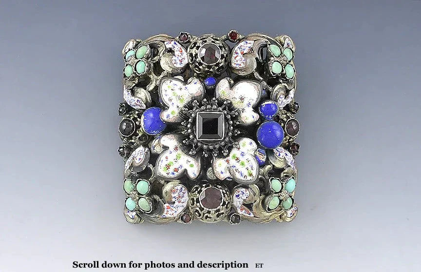 Nice Antique Austro Hungarian Silver Garnet Turquoise Enamel Pin/Brooch