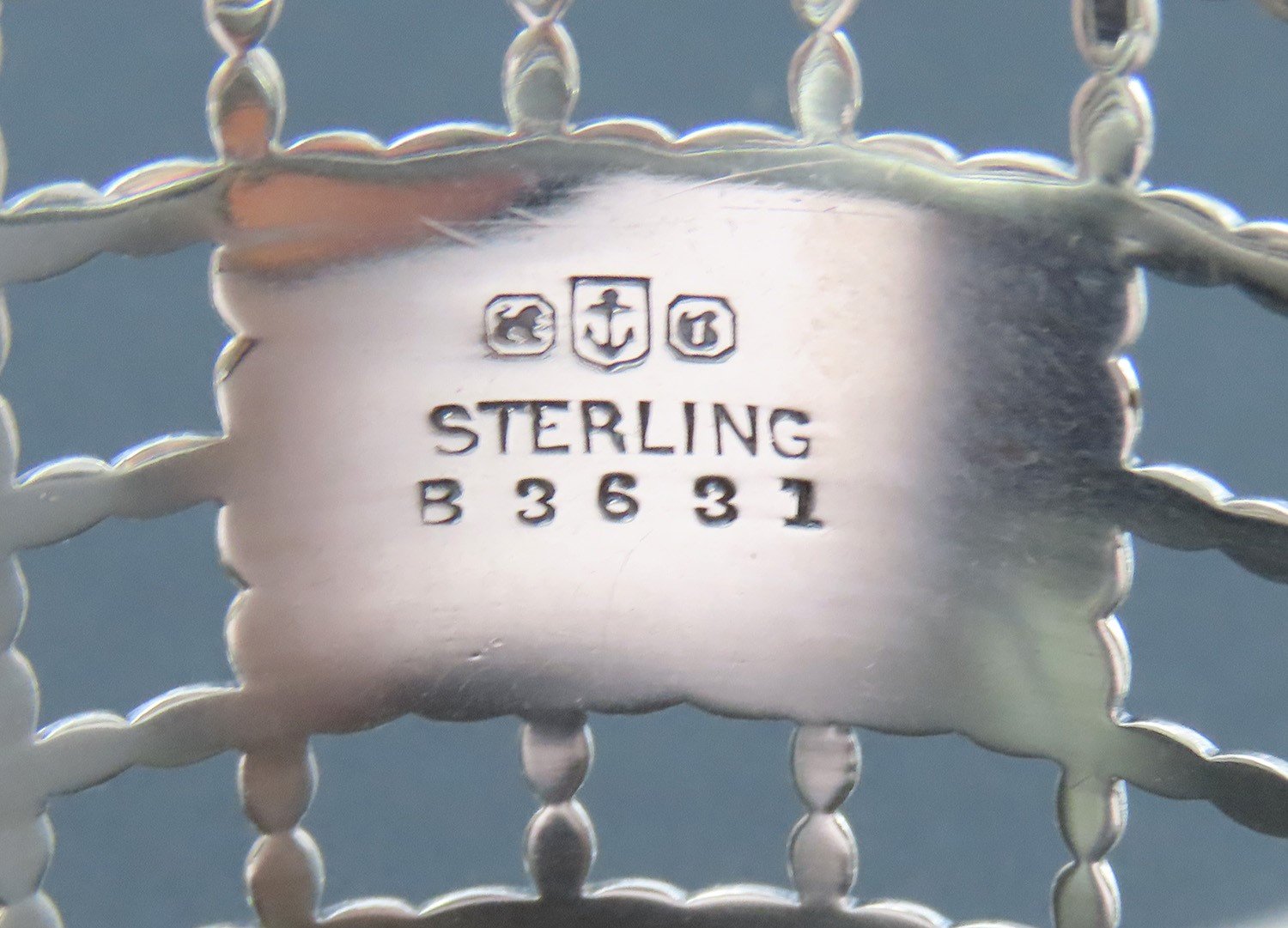 The reverse of the cartouche area is stamped with the Gorham maker's mark as well a sterling and a product number B3631.