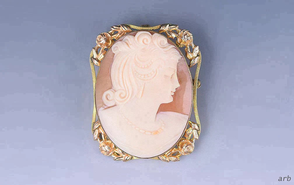 Nice Gold-Filled Beautifully-Carved Female Profile Shell Cameo w/ Floral Setting
