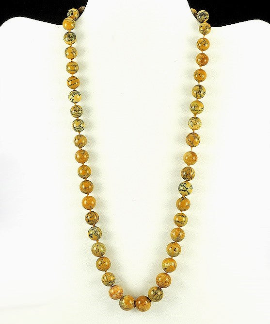 Nice Marbled Yellow Stone Graduated Bead Necklace 14k Clasp 24 inch Length