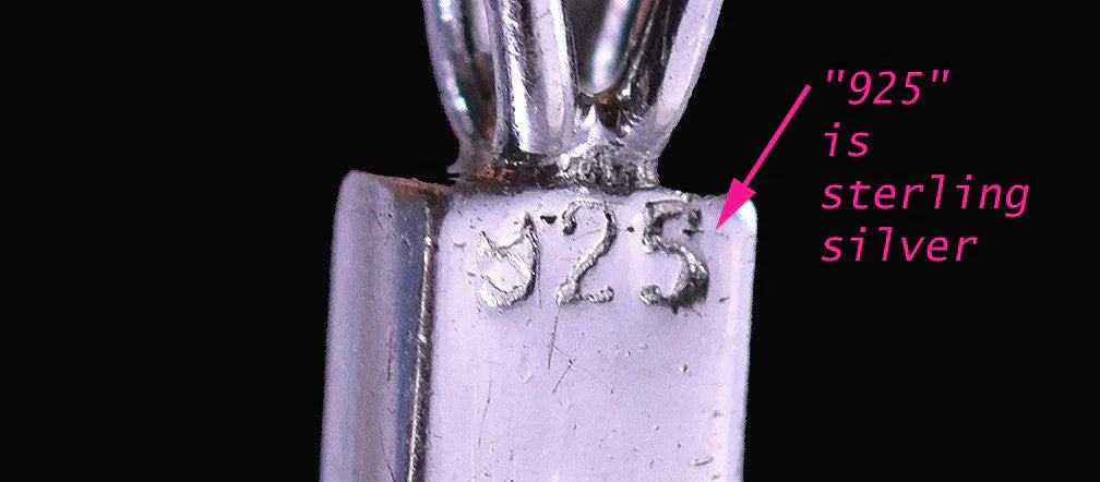 It is stamped "925" on the clasp for sterling silver. We believe this piece originated in Italy. It matches a necklace with identical design which was Italian.