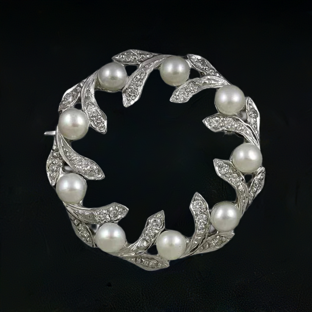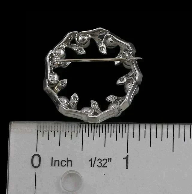 Nice Vintage 14k White Gold Diamond Pearl Wreath Pin Brooch